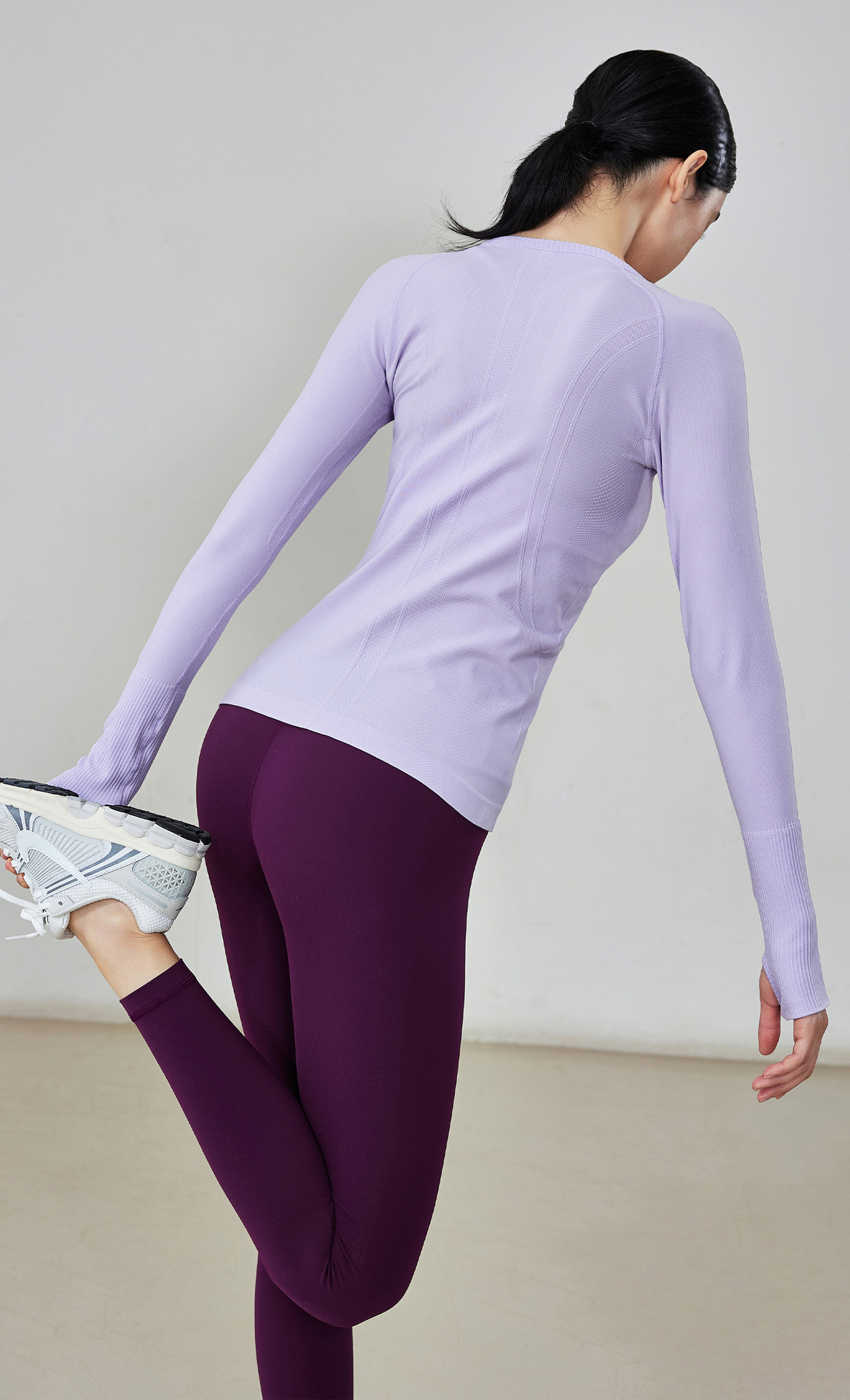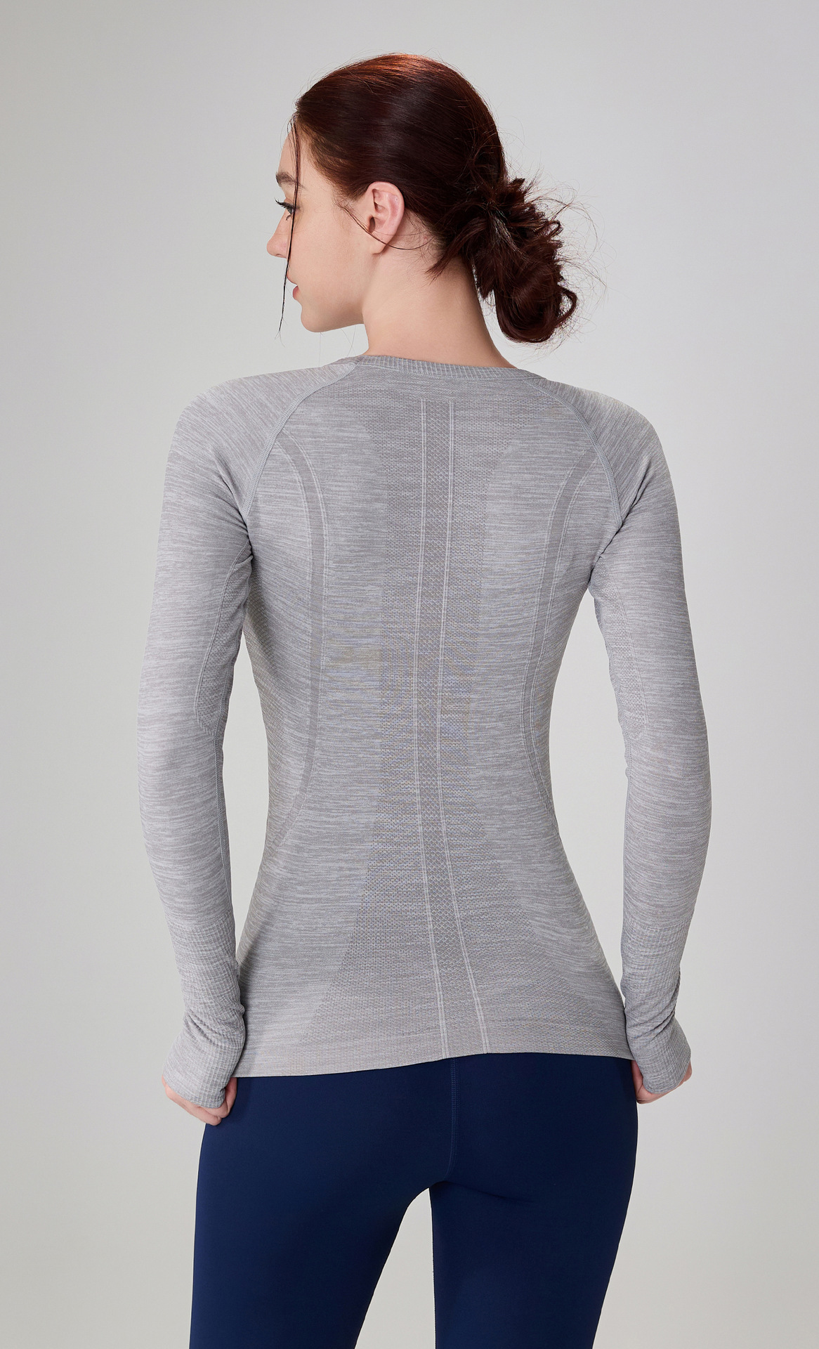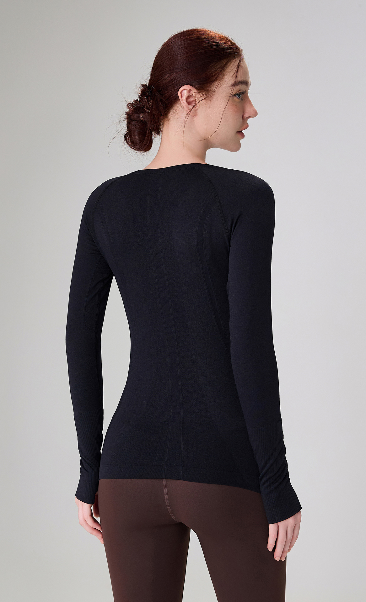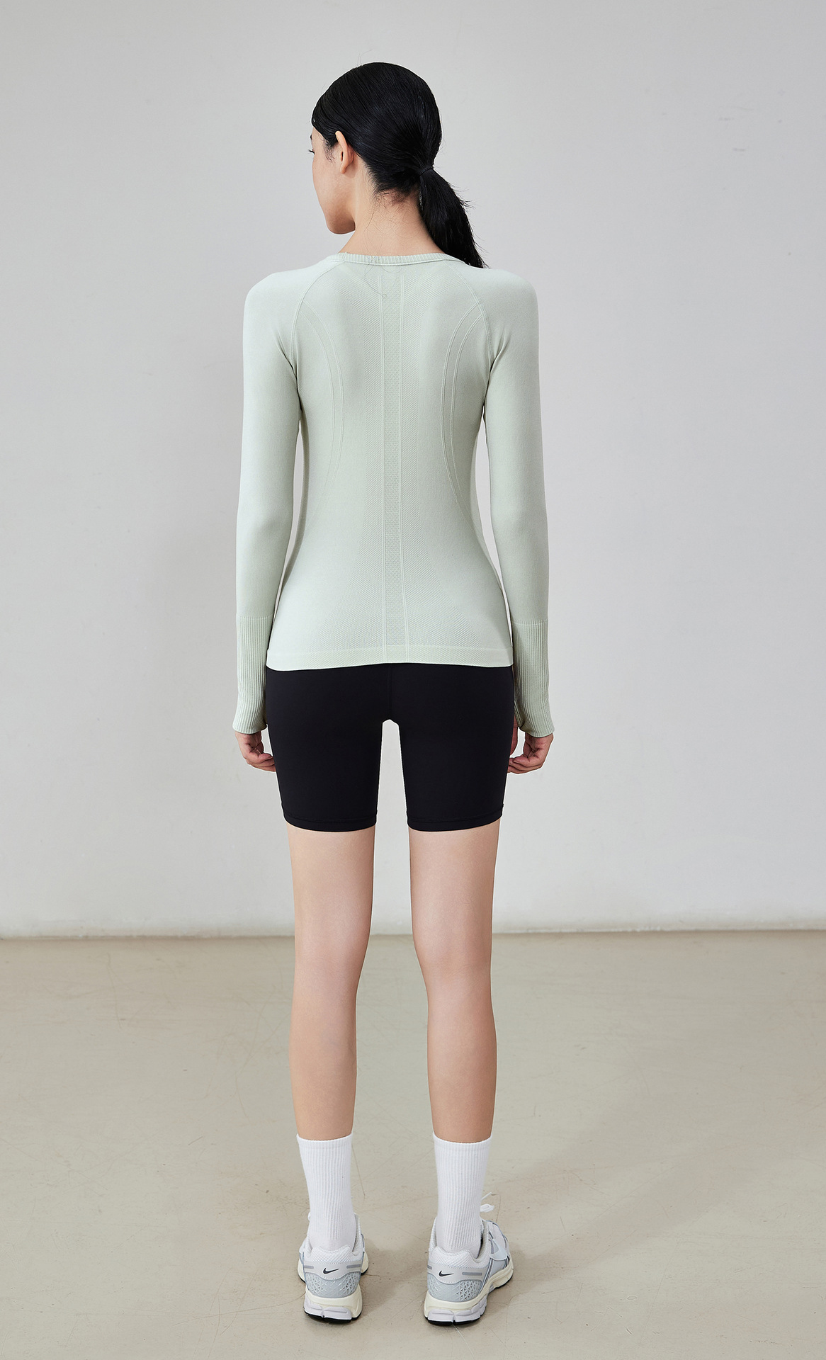 무봉제 요가복 상의 스포츠웨어 라운드넥 슬림핏 흡습 발한 피트니스복 여성용 가을 긴팔 통기성 운동복