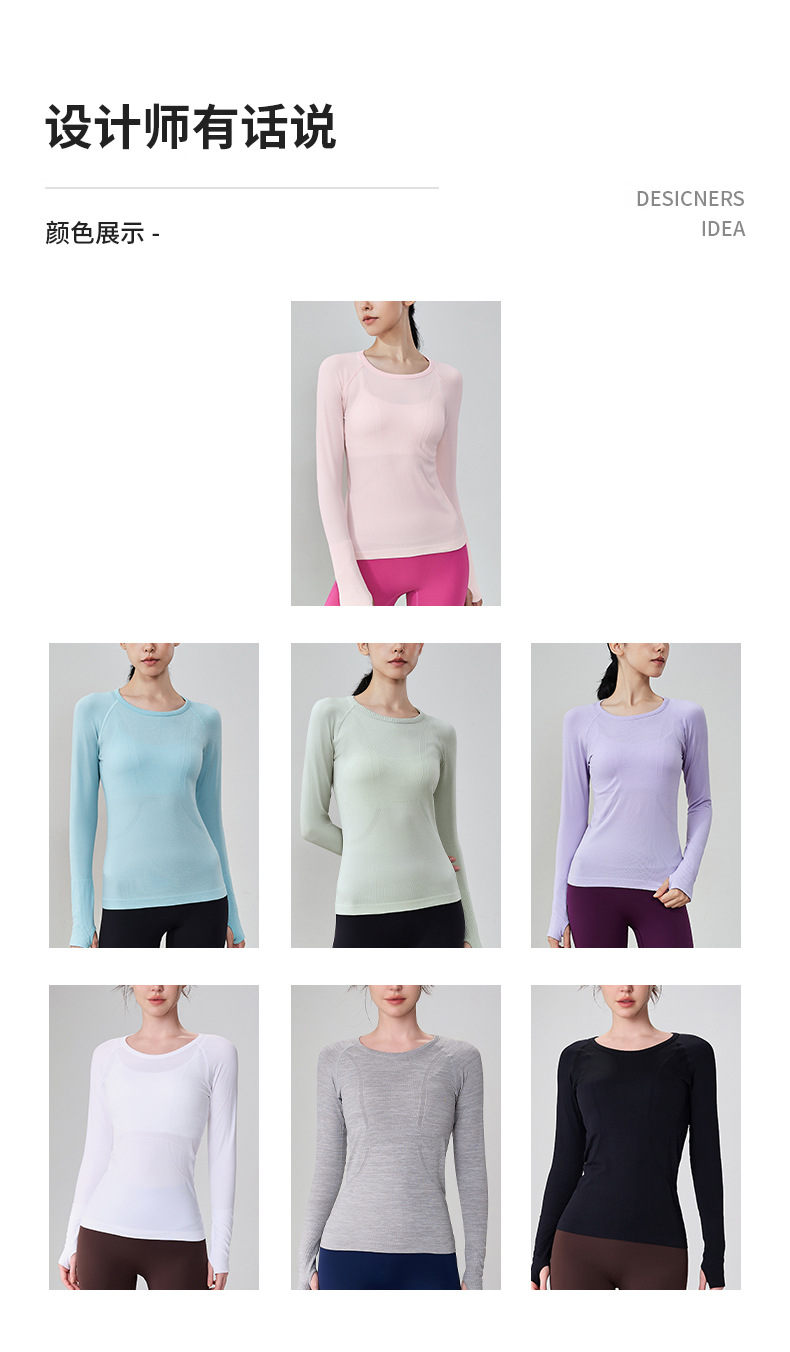 무봉제 요가복 상의 스포츠웨어 라운드넥 슬림핏 흡습 발한 피트니스복 여성용 가을 긴팔 통기성 운동복스토어 가기