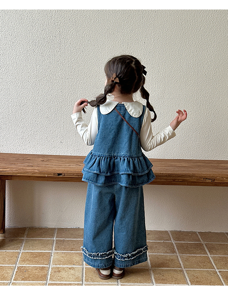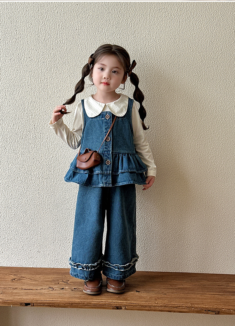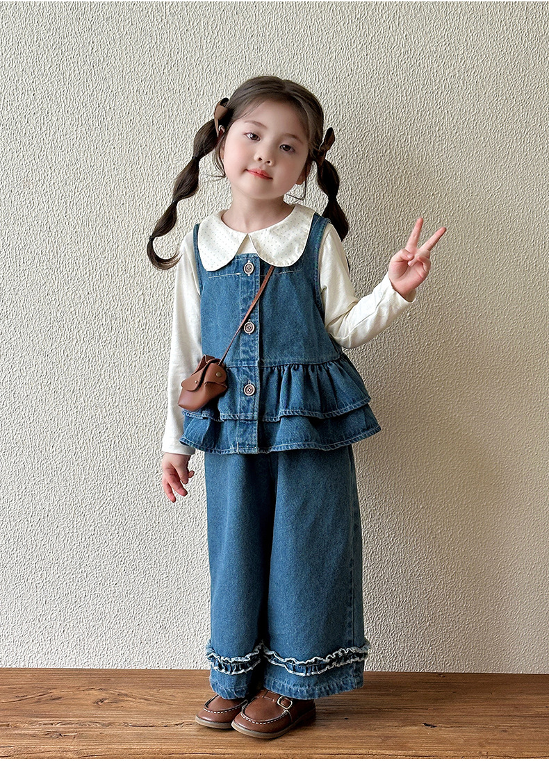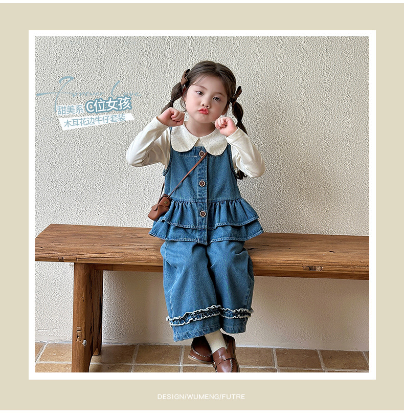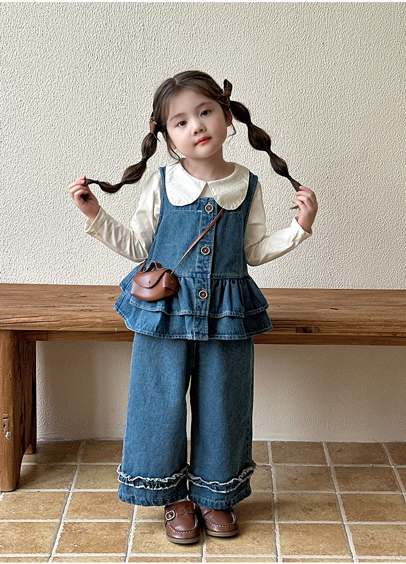 여자 데님 정장 가을 의류 2025 새로운 어린이 가을 유행 옷 아기 소녀 봄, 가을 투피스 세트스토어 가기
