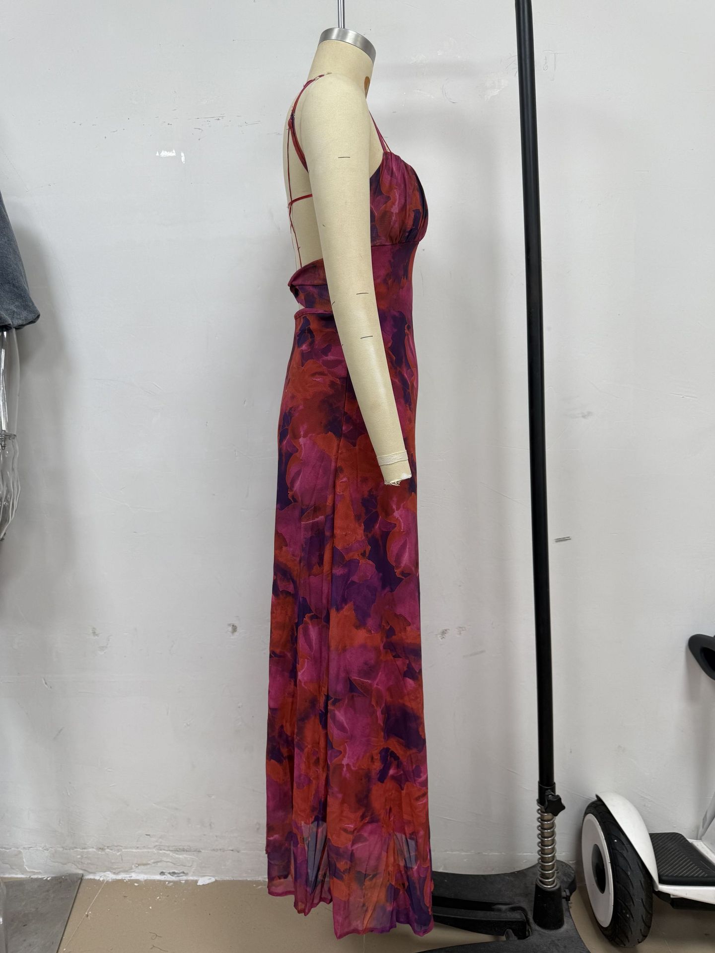 2025 유럽과 미국의 크로스보더 여름 새로운 스타일 프랑스 우아한 기질 타이 염색 중공 백리스 서스펜더 드레스-P2099