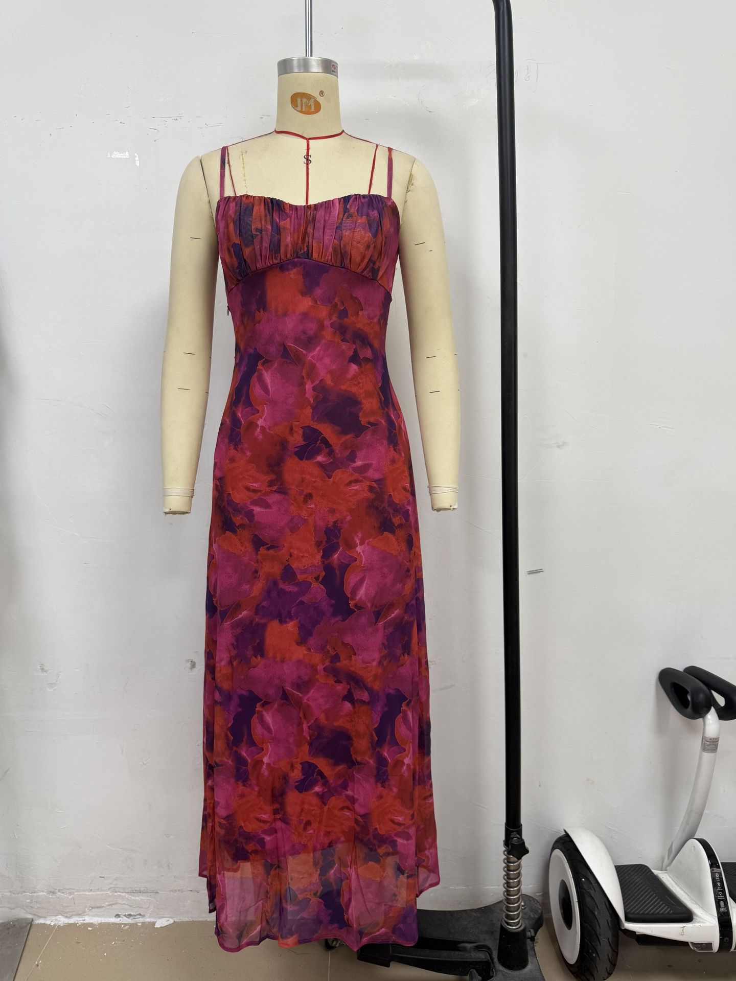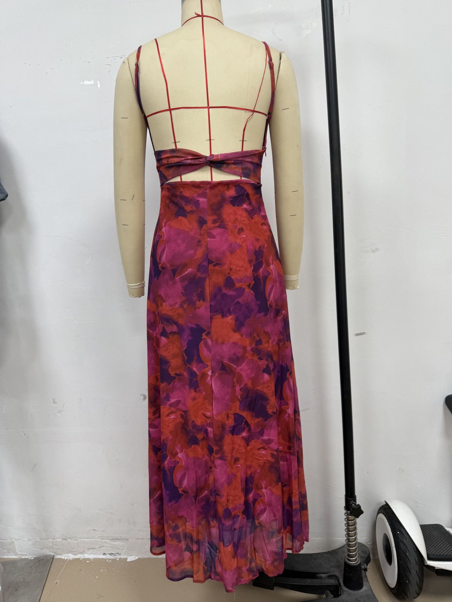 2025 유럽과 미국의 크로스보더 여름 새로운 스타일 프랑스 우아한 기질 타이 염색 중공 백리스 서스펜더 드레스-P2099스토어 가기
