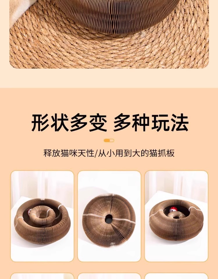 新款风琴猫抓板魔术瓦楞纸耐磨不掉屑强磁可折叠自嗨解闷猫幼玩具