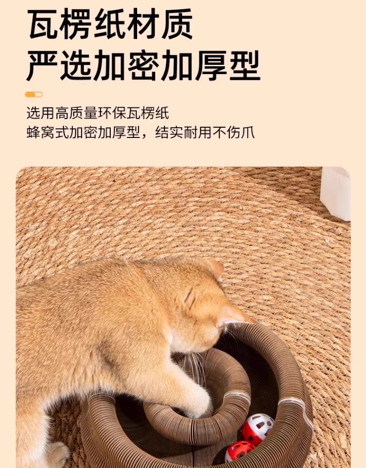 风琴猫抓板带小球玩具磁吸猫咪玩具自嗨解闷瓦楞纸转盘圆形猫玩具