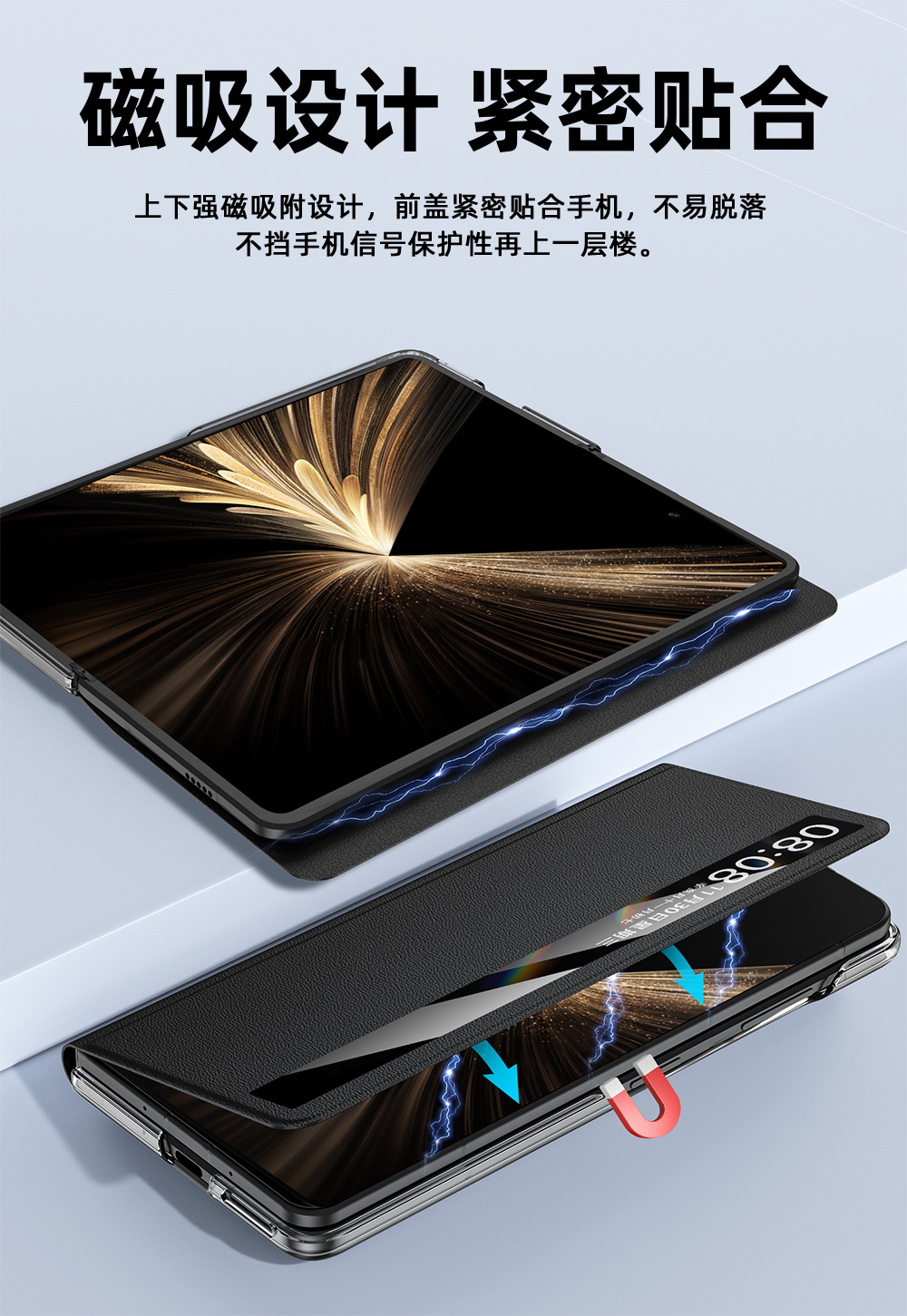 Honor MagicV5 가죽 케이스에 적합 휴대폰 케이스 수직 스탠드 진짜 소가죽 나파 핀홀 패턴 V5 초박형 보호 케이스스토어 가기