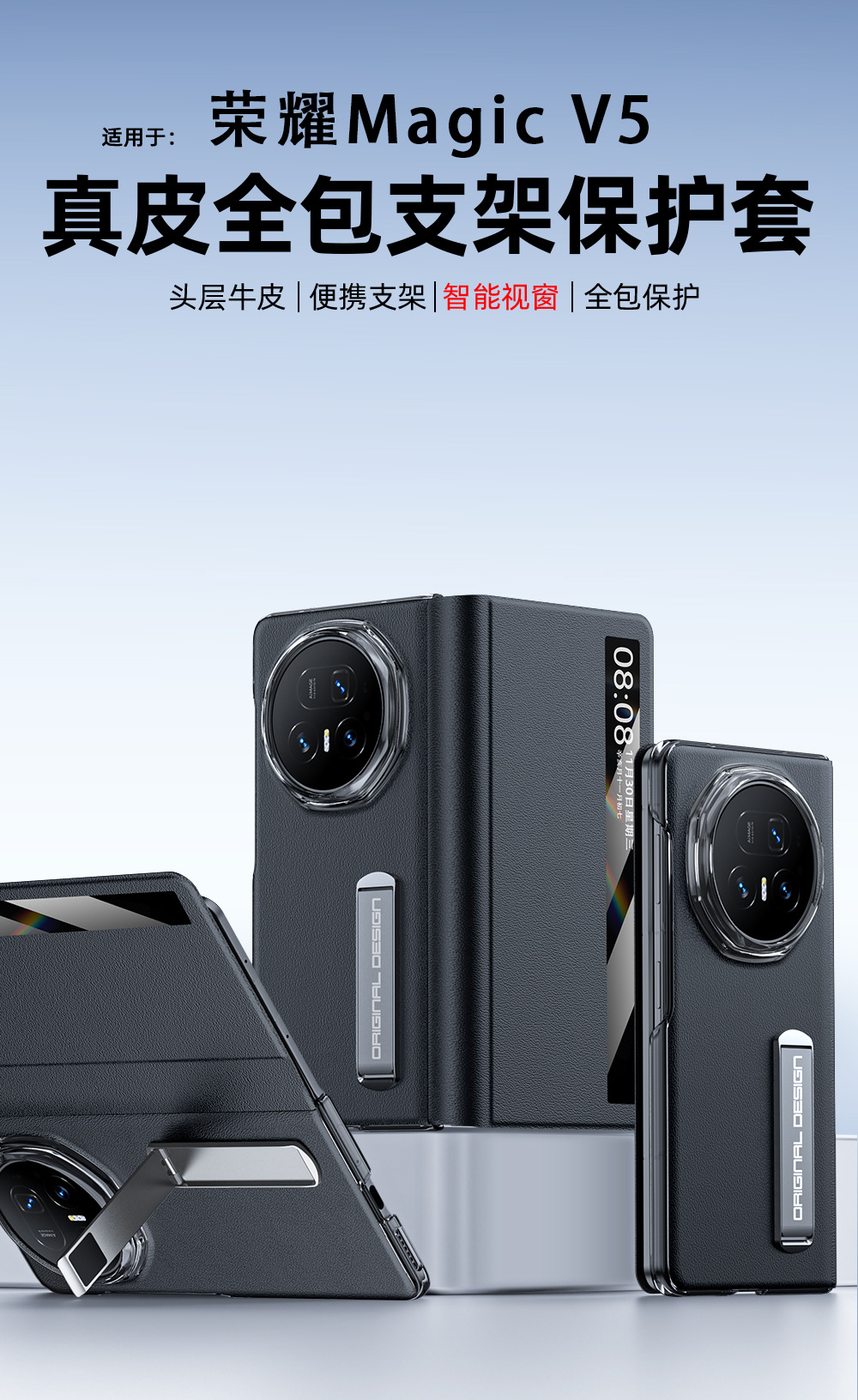 Honor MagicV5 가죽 케이스에 적합 휴대폰 케이스 수직 스탠드 진짜 소가죽 나파 핀홀 패턴 V5 초박형 보호 케이스