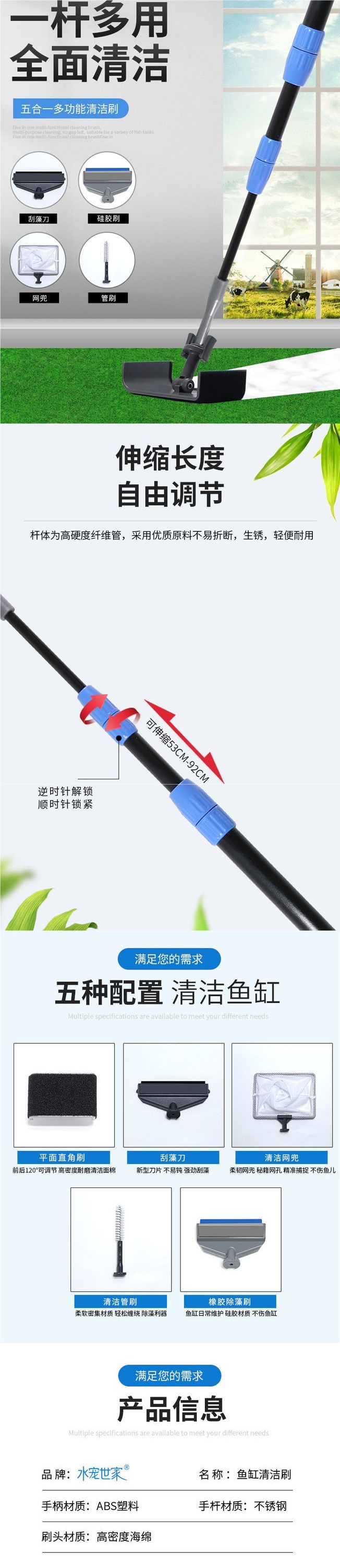• SJ-3 다기능 5-in-1 수조 브러시(접이식 버전)