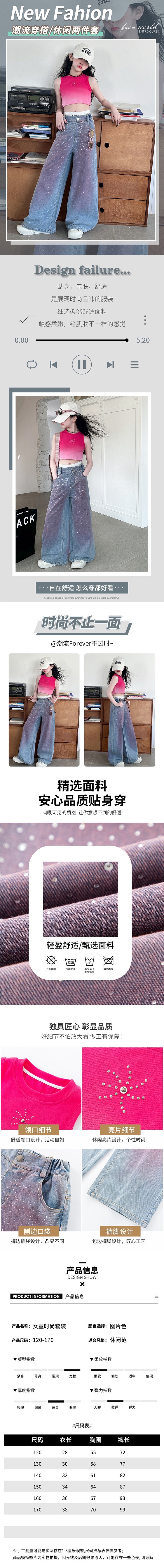 여아 핫 다이아몬드 슈트 2025 여름 한국 스타일 핫 다이아몬드 슬림 와이드 레그 청바지 펜던트 염색 조끼 투피스 세트스토어 가기