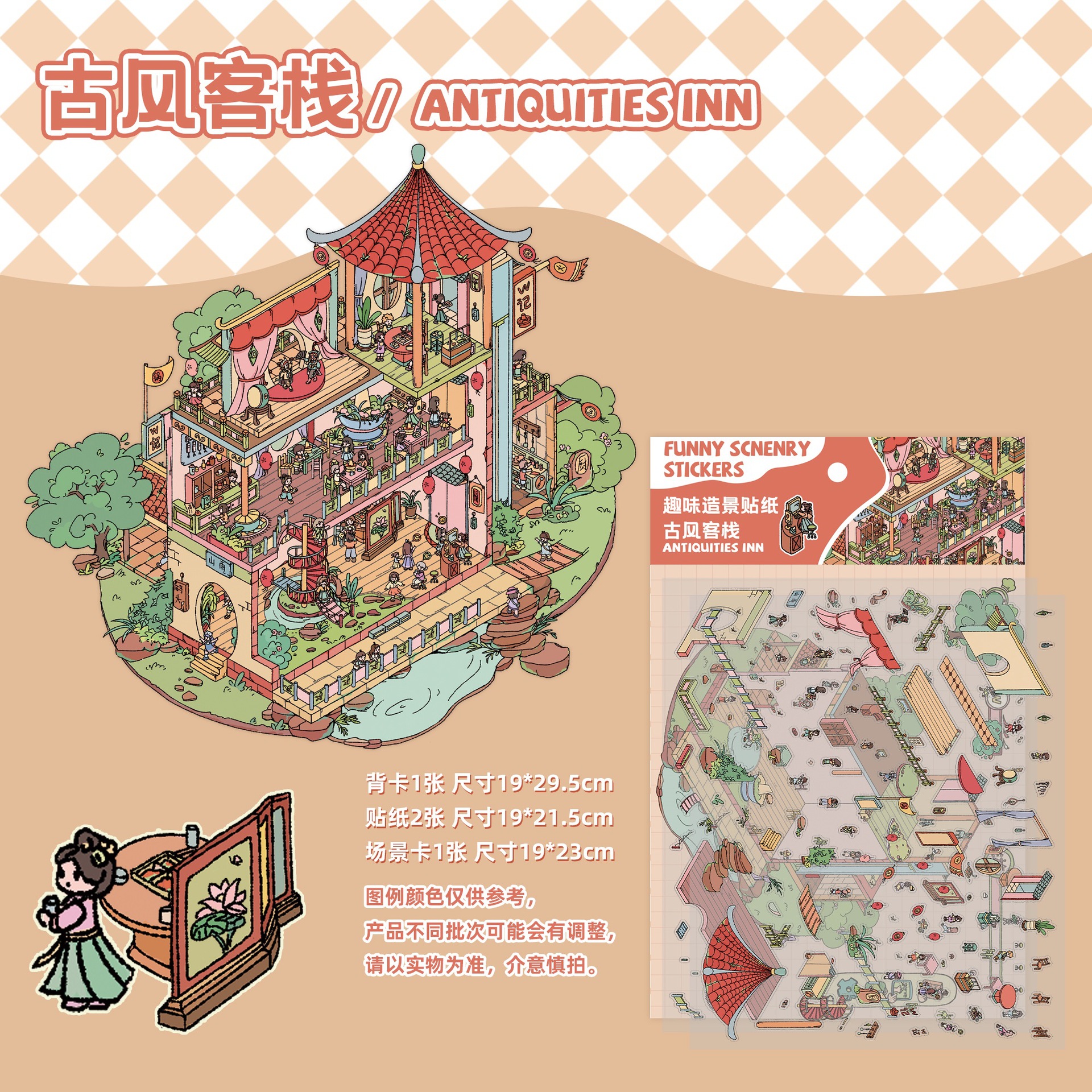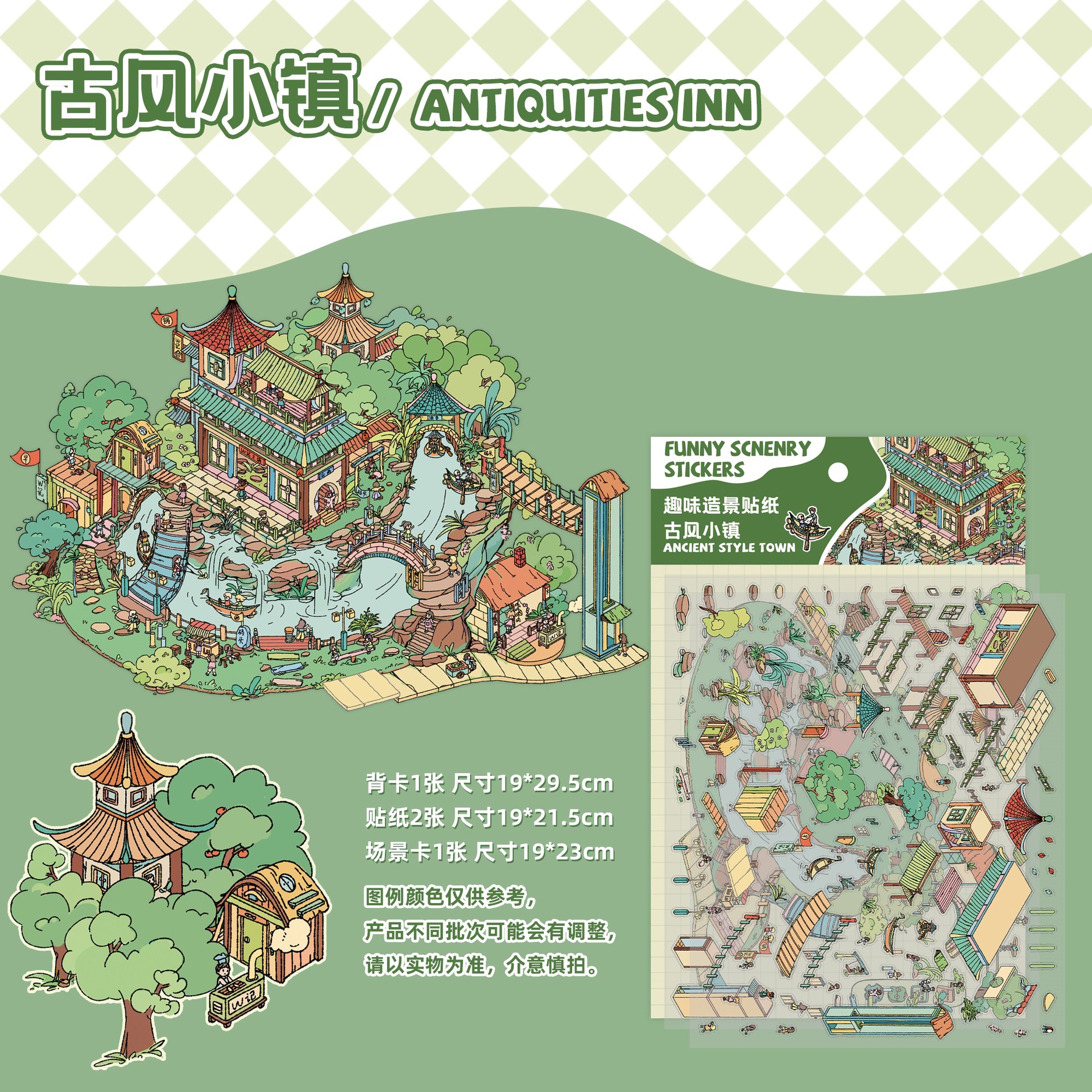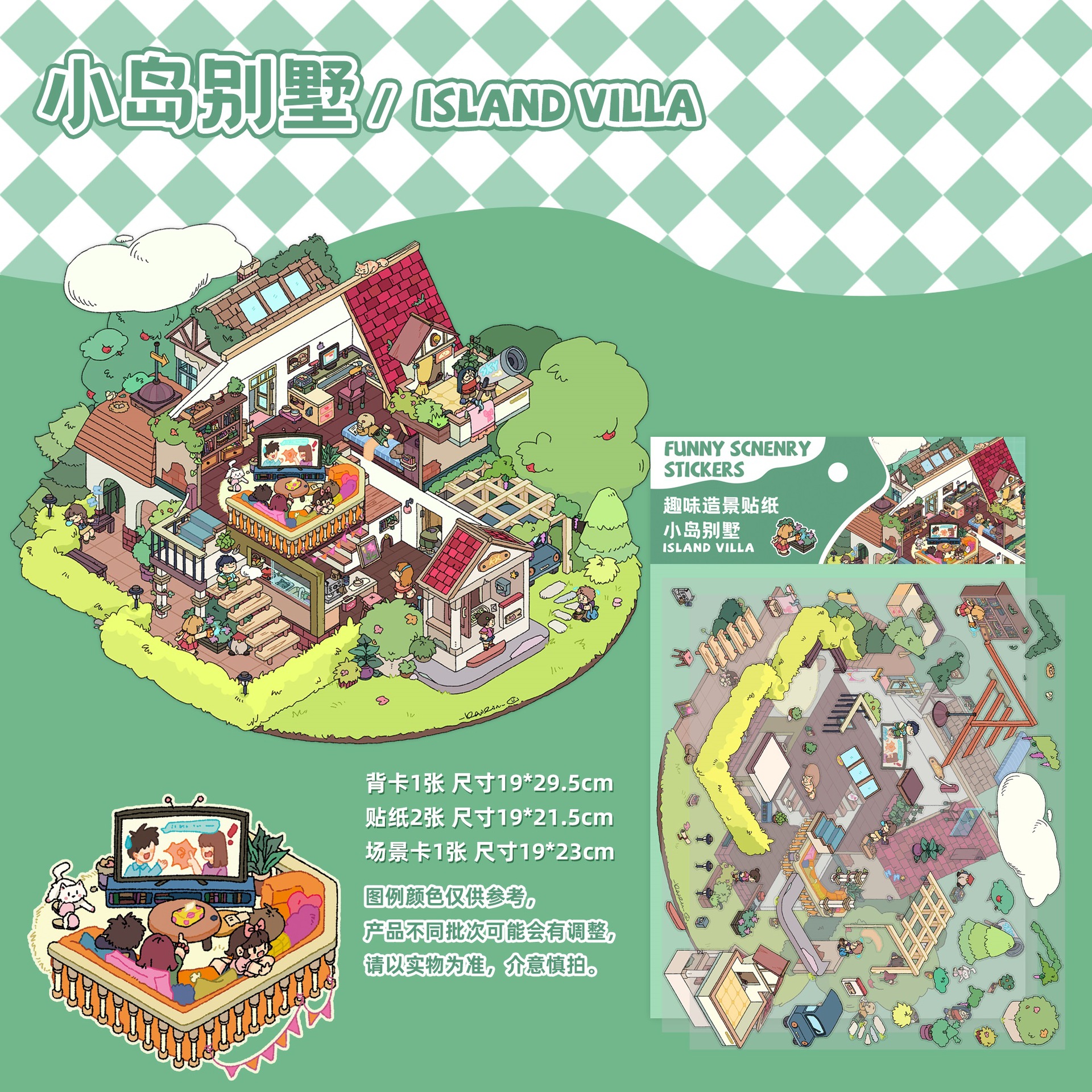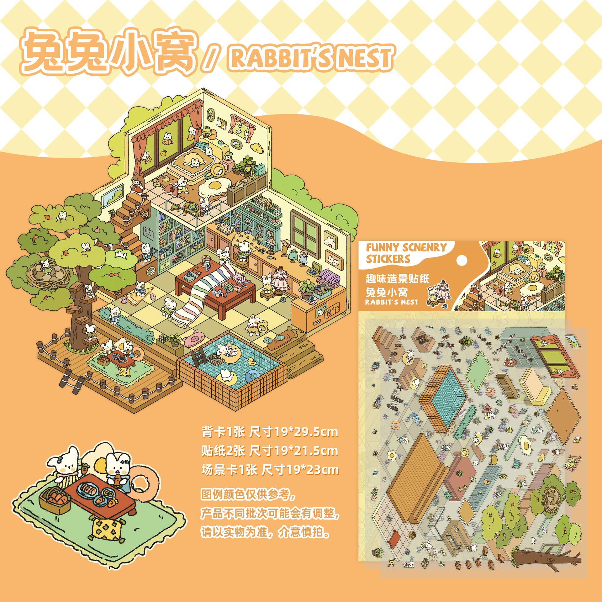 원래 검은 가방 조경 스티커 미니어처 장면 저장 만화 3 입체 오두막 어린 소녀 어린이 장난감 핸드북