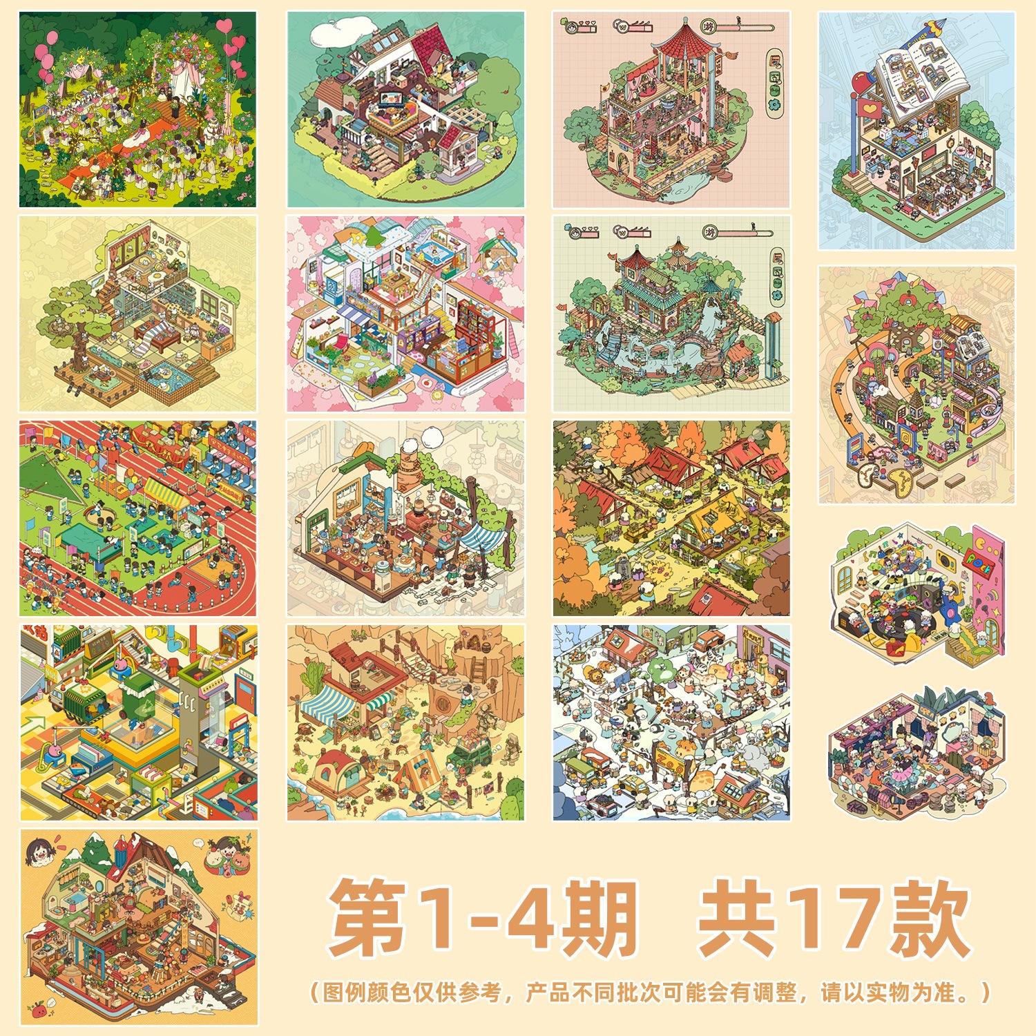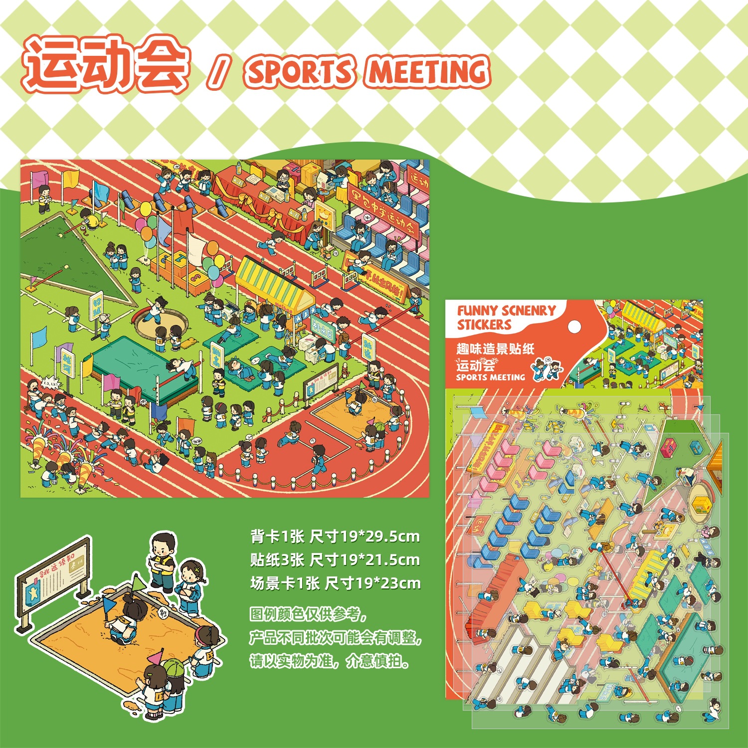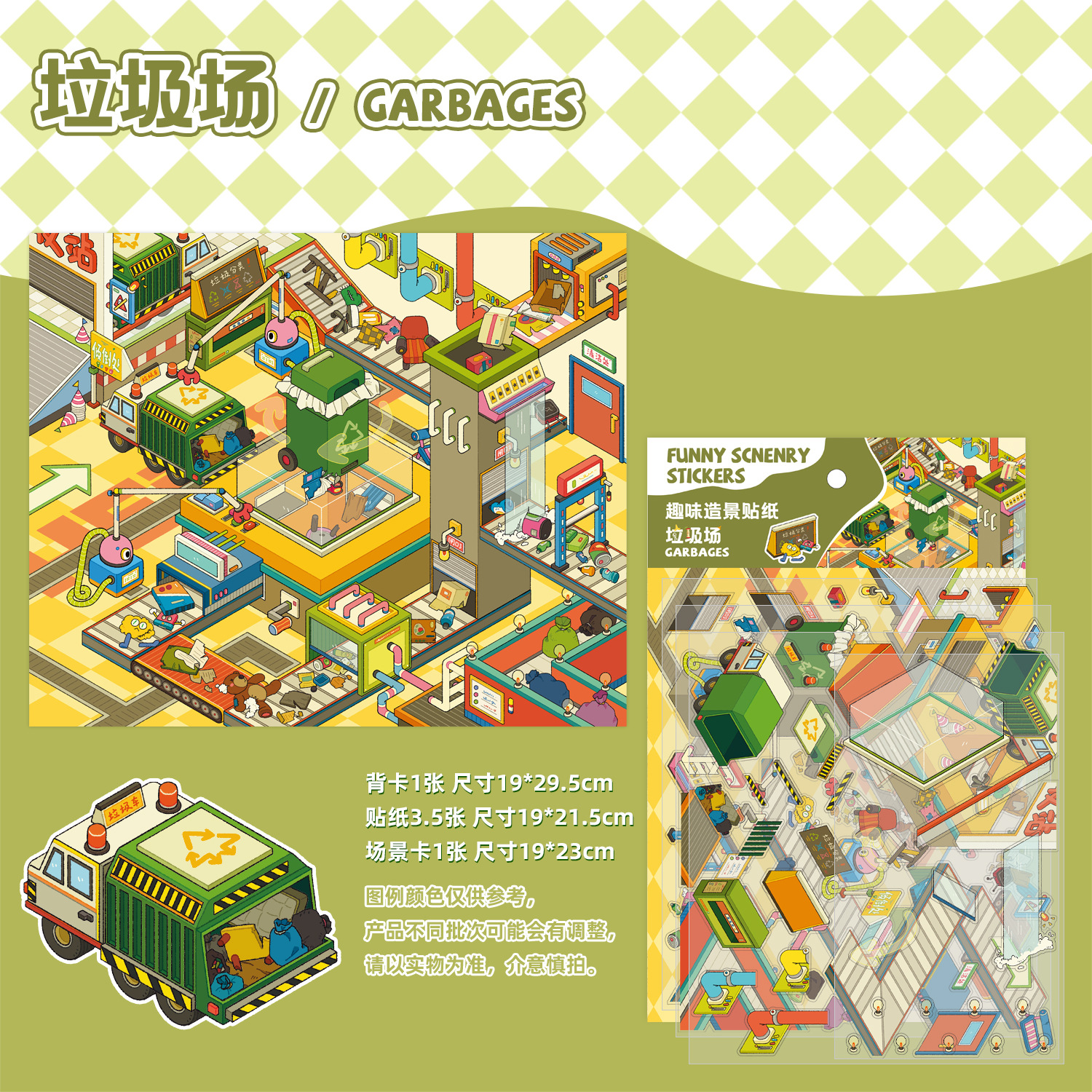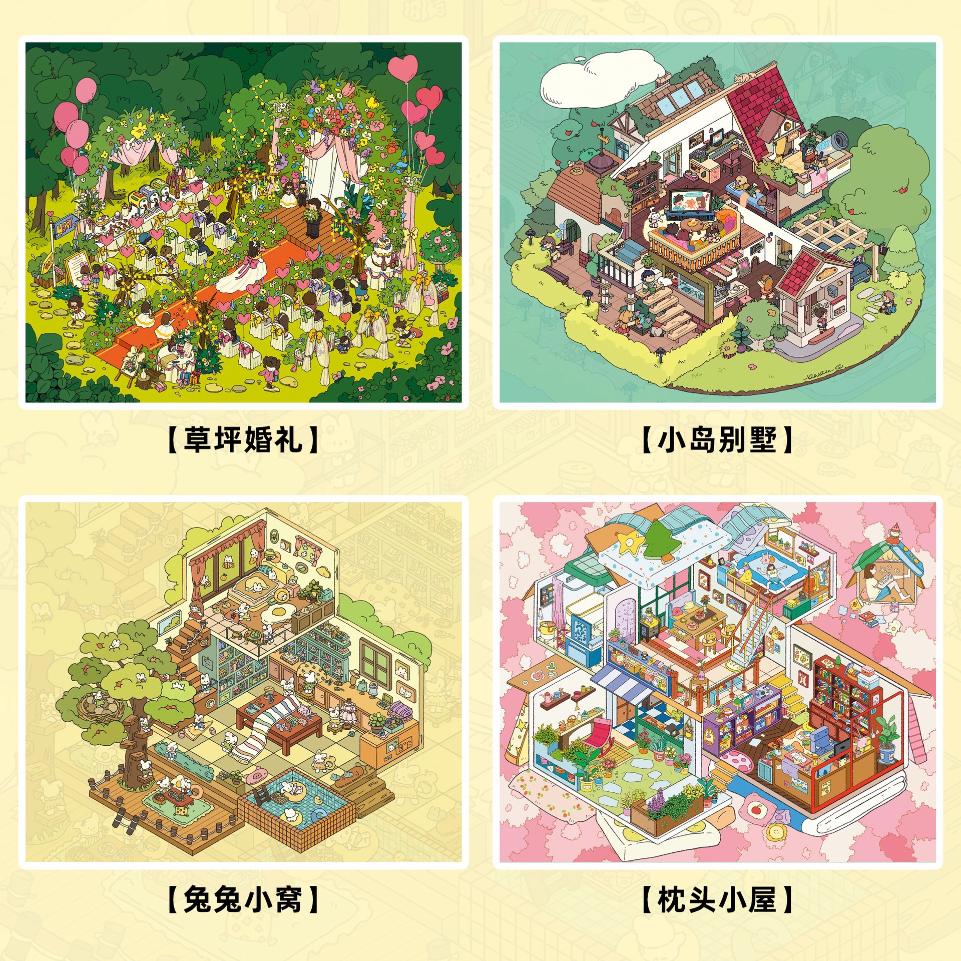 원래 검은 가방 조경 스티커 미니어처 장면 저장 만화 3 입체 오두막 어린 소녀 어린이 장난감 핸드북