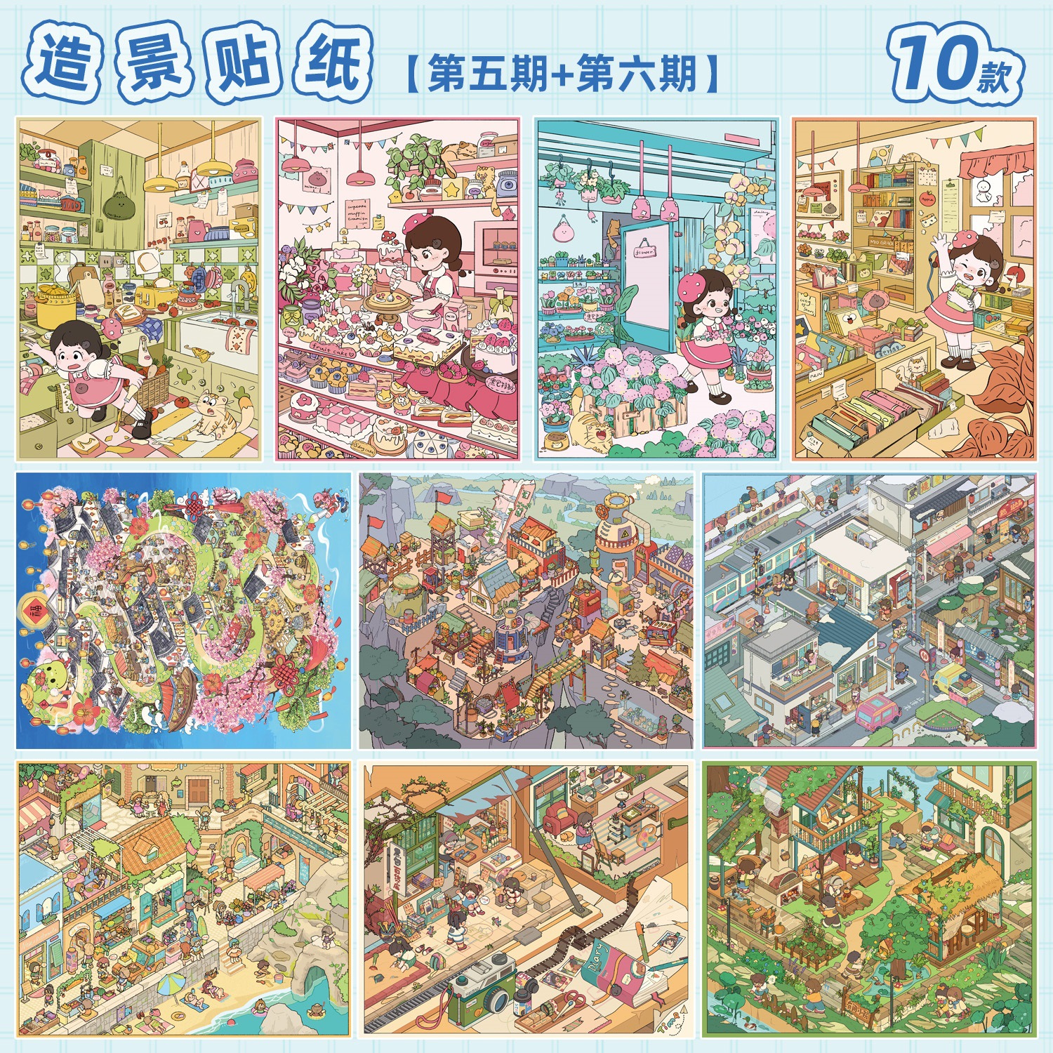 원래 검은 가방 조경 스티커 미니어처 장면 저장 만화 3 입체 오두막 어린 소녀 어린이 장난감 핸드북스토어 가기