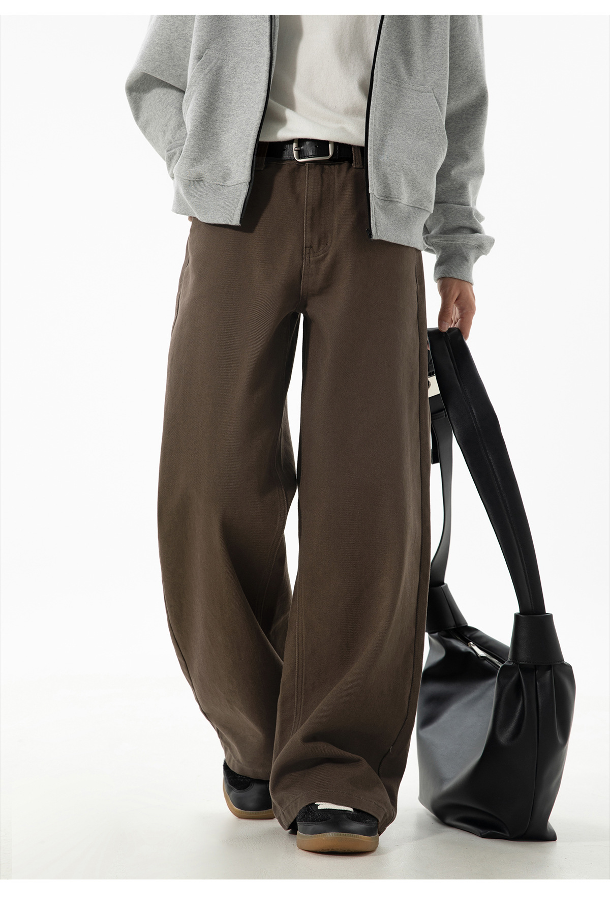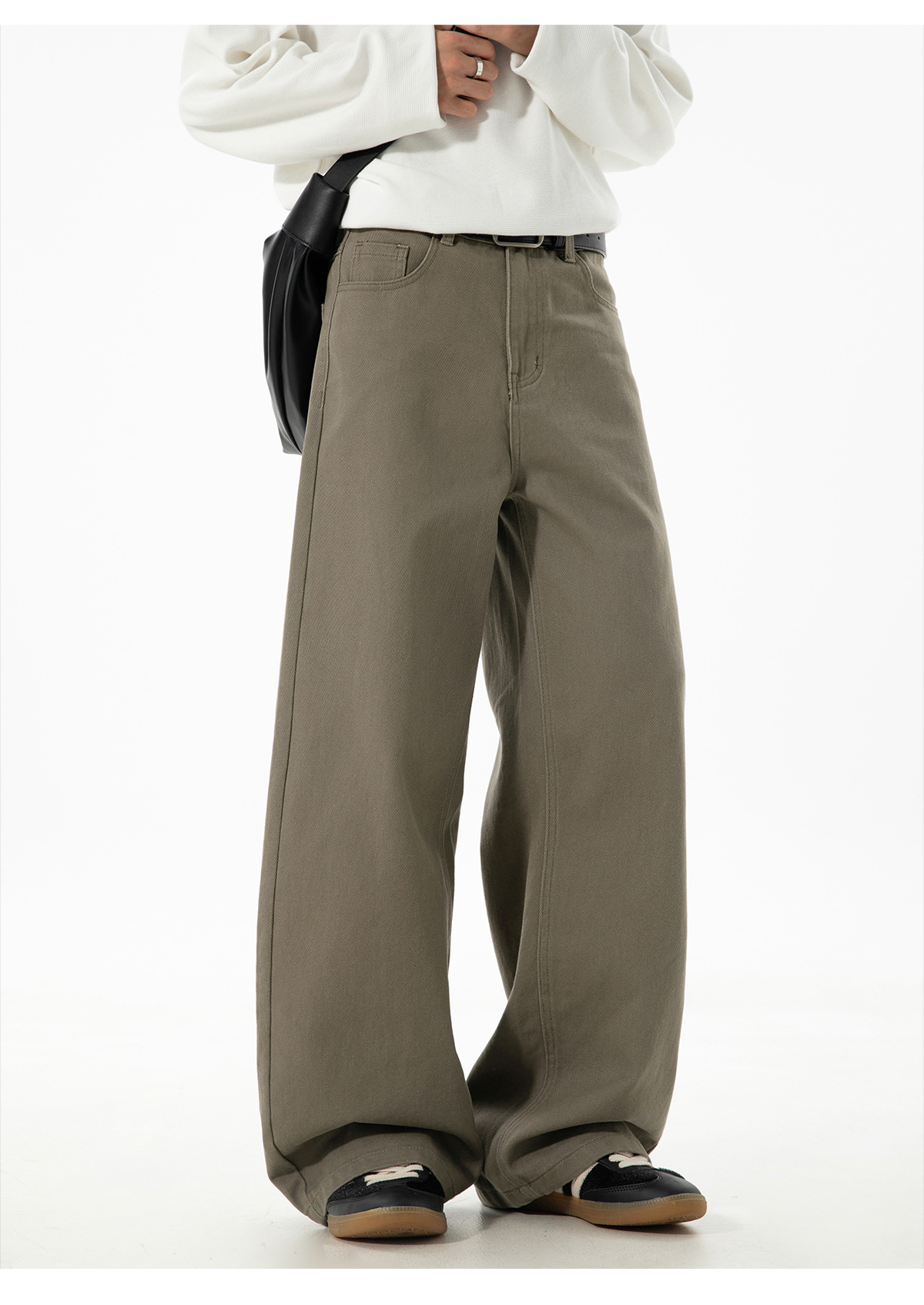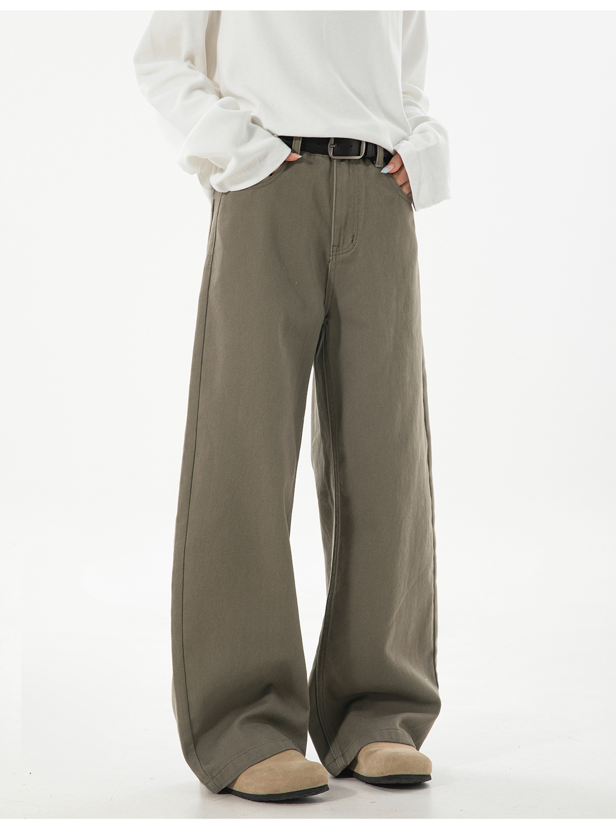 가을 신상품 남성용 능직 마이크로 와이드 루즈 스트레이트 캐주얼 팬츠 텍스처드 퓨어 코튼 반탄성 트렌디 브랜드 레트로 롱 팬츠