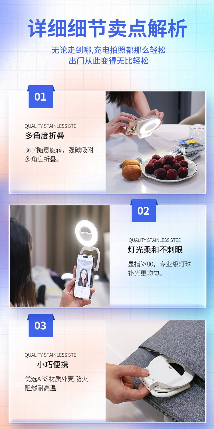 국경 간 다기능 자기 접이식 스탠드 포켓 라이트 Y8 휴대용 라이브 회의 조명 비디오 촬영 보조 조명스토어 가기