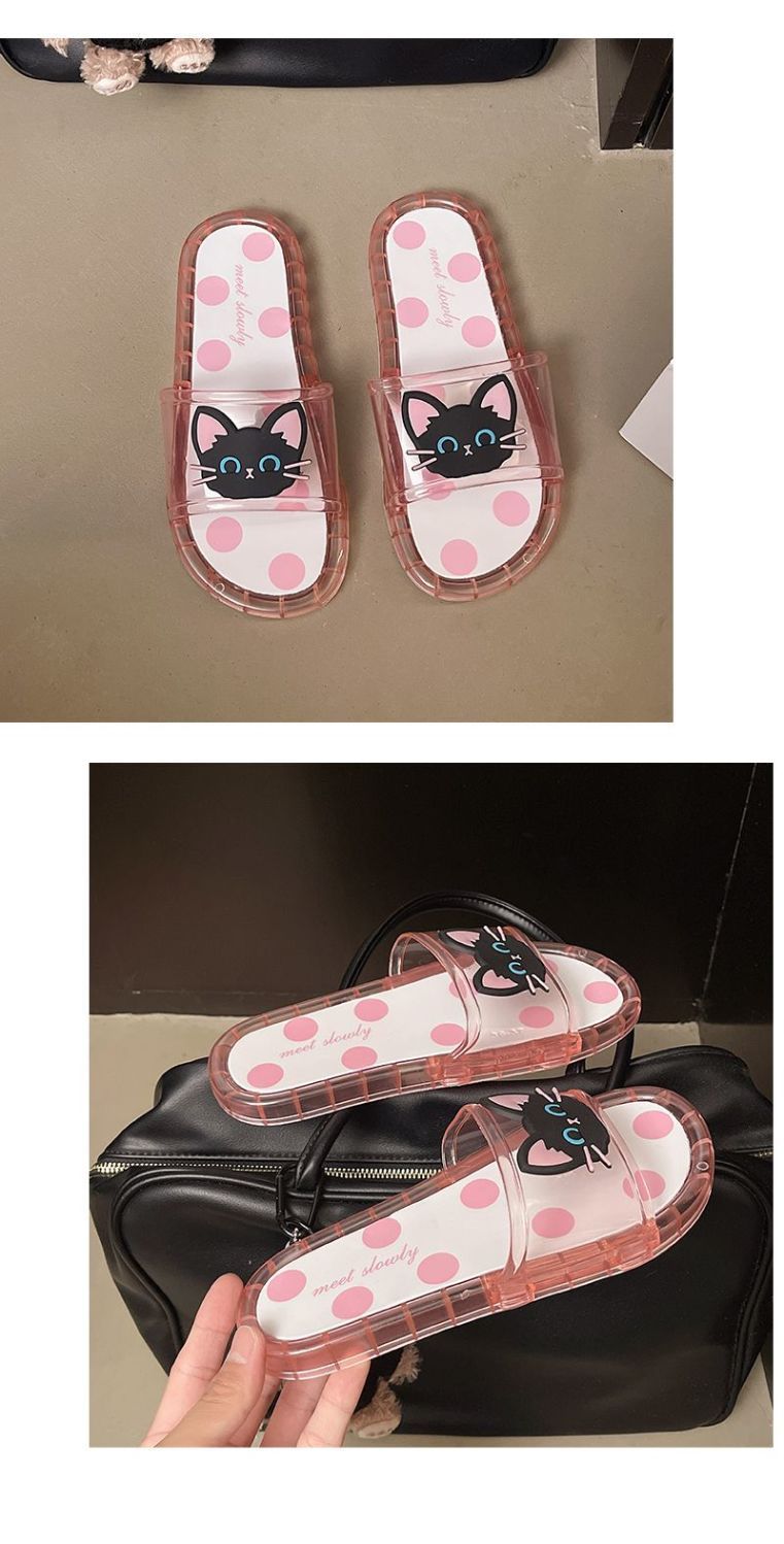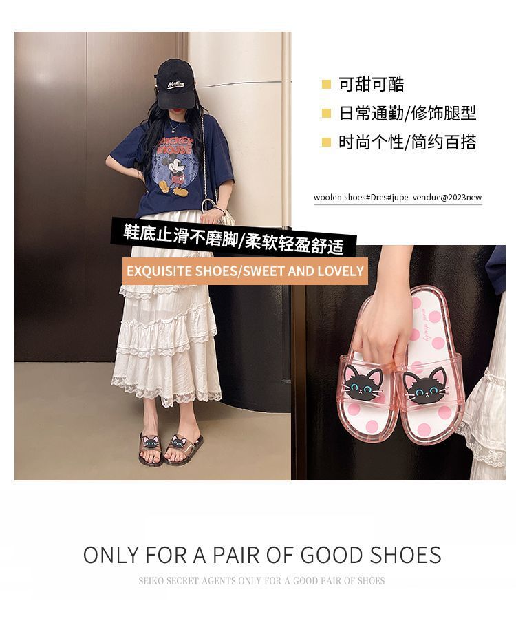 여름 여학생 기숙사 집 외출을 위한 멋진 작은 검은 고양이 캐주얼 틈새 스타일 슬리퍼 내마모성 슬리퍼스토어 가기
