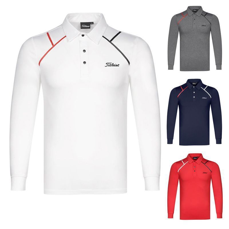 봄과 가을 새로운 골프 남성 긴팔 스포츠 및 레저 폴로 셔츠 저지 땀 흡수 속건 탑 다용도 스트레치
