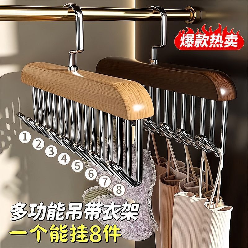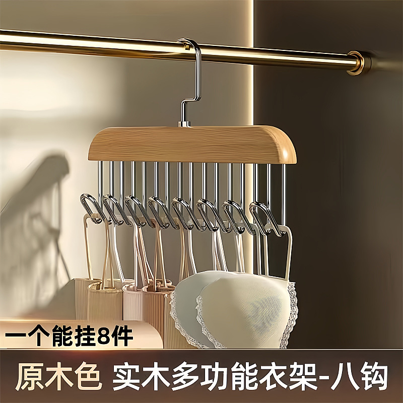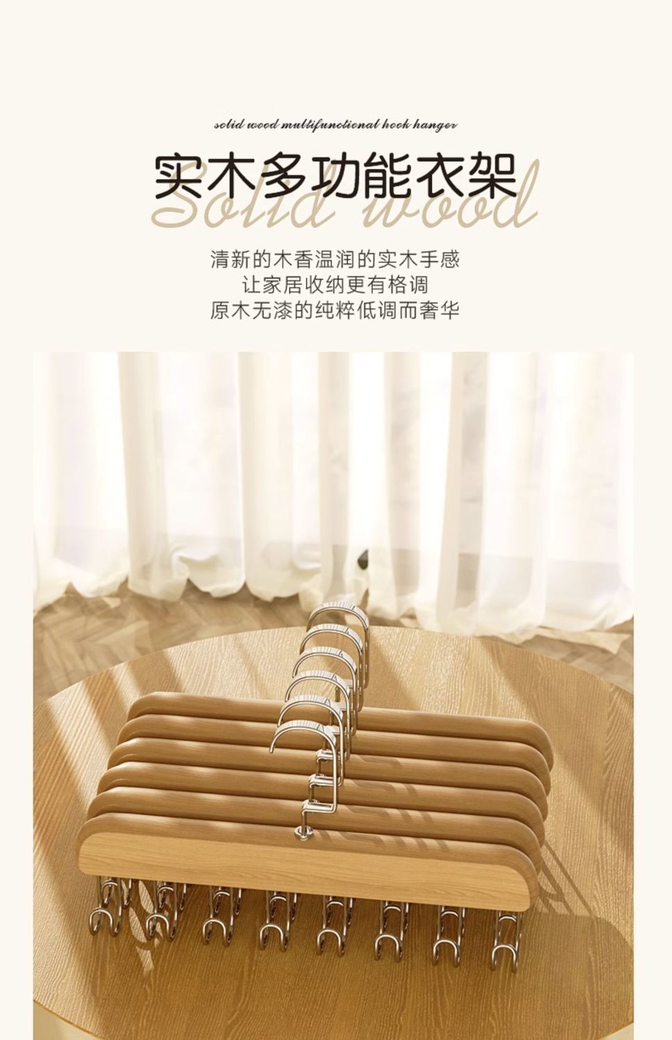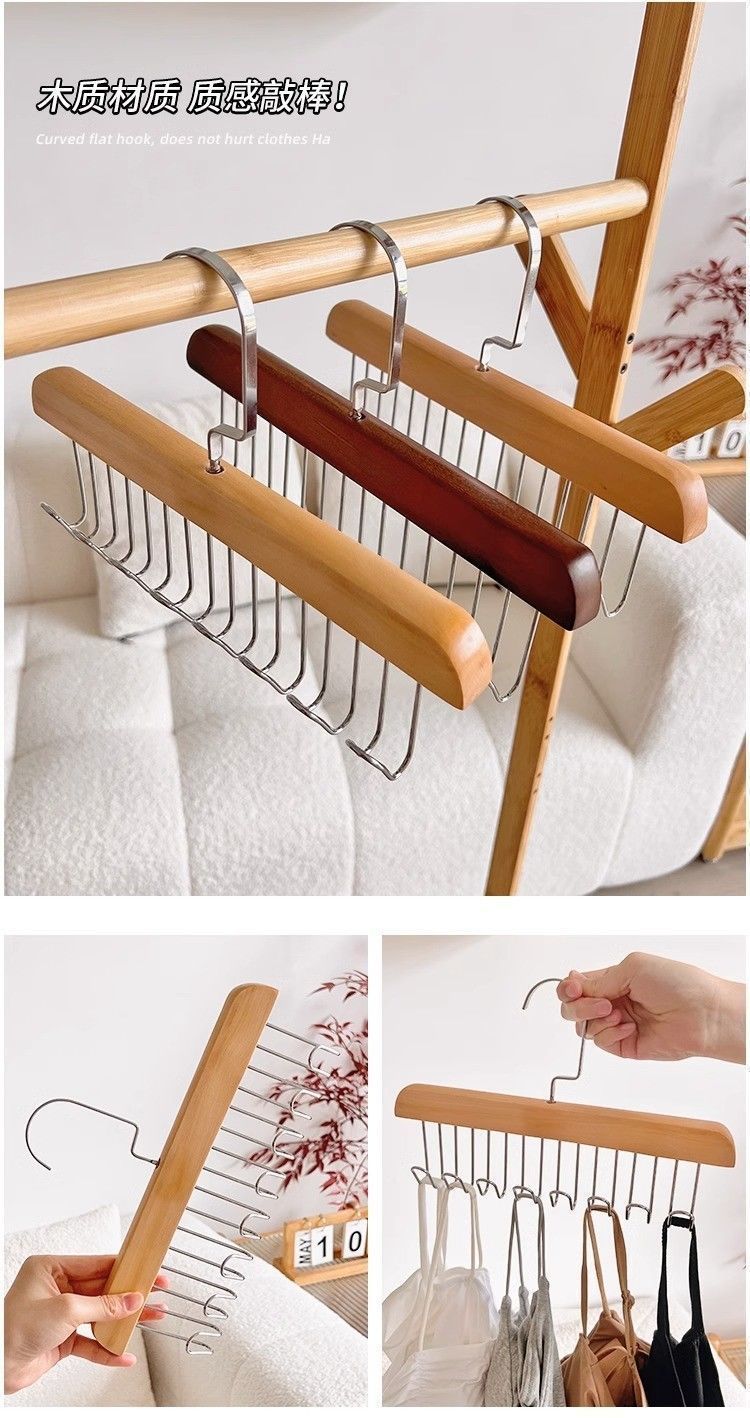 스트랩 옷걸이 나무 가정용 다기능 속옷 조끼 보관 멀티 후크 기숙사 단단한 나무 후크 물결 모양의 진드기 제거 패드