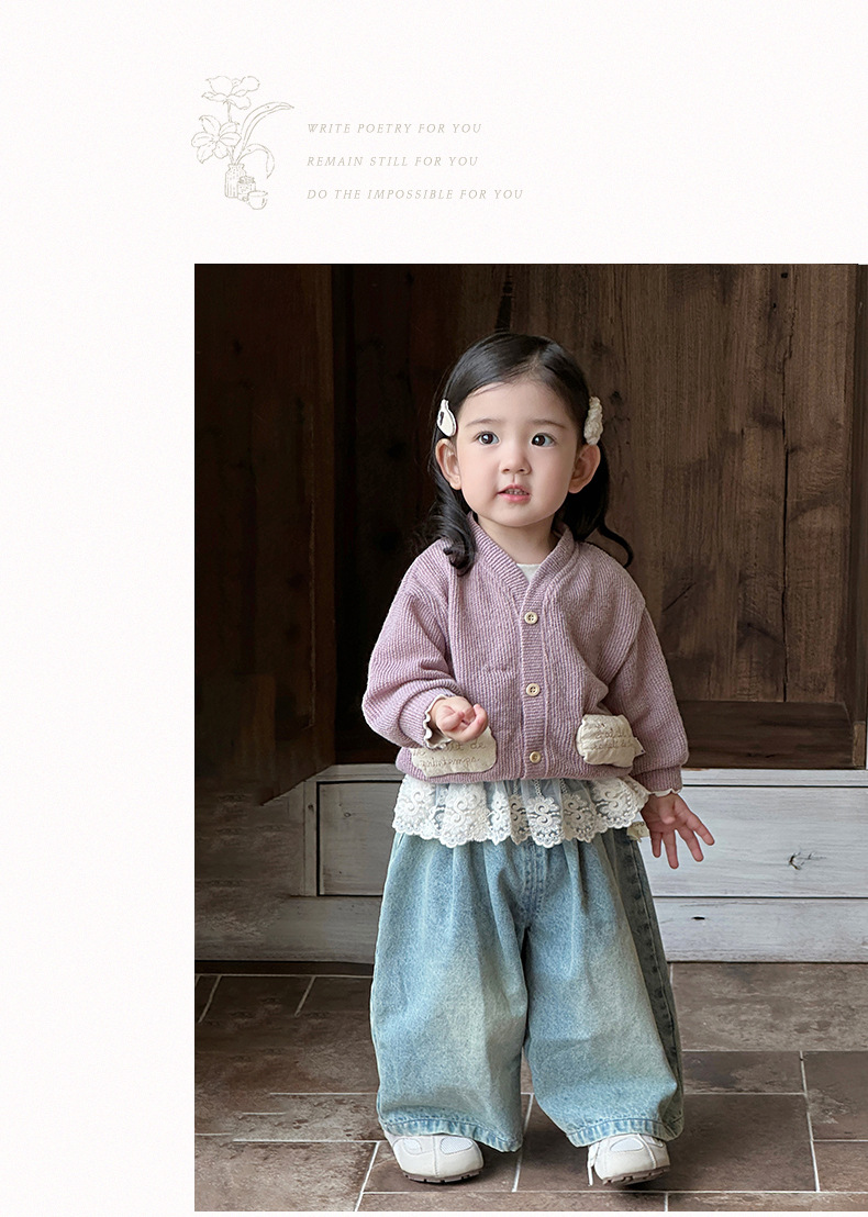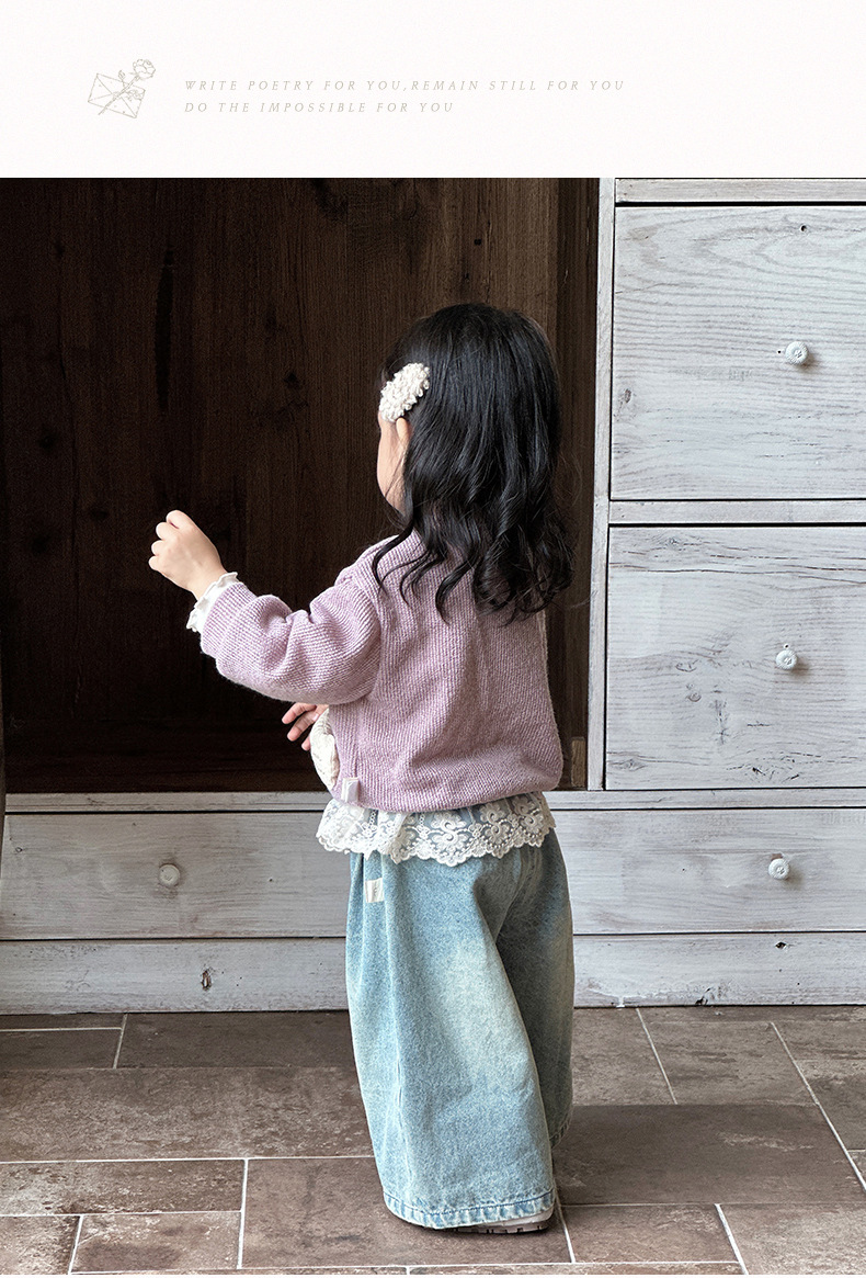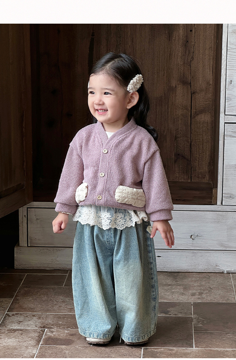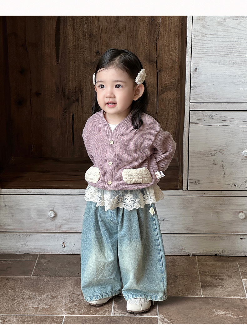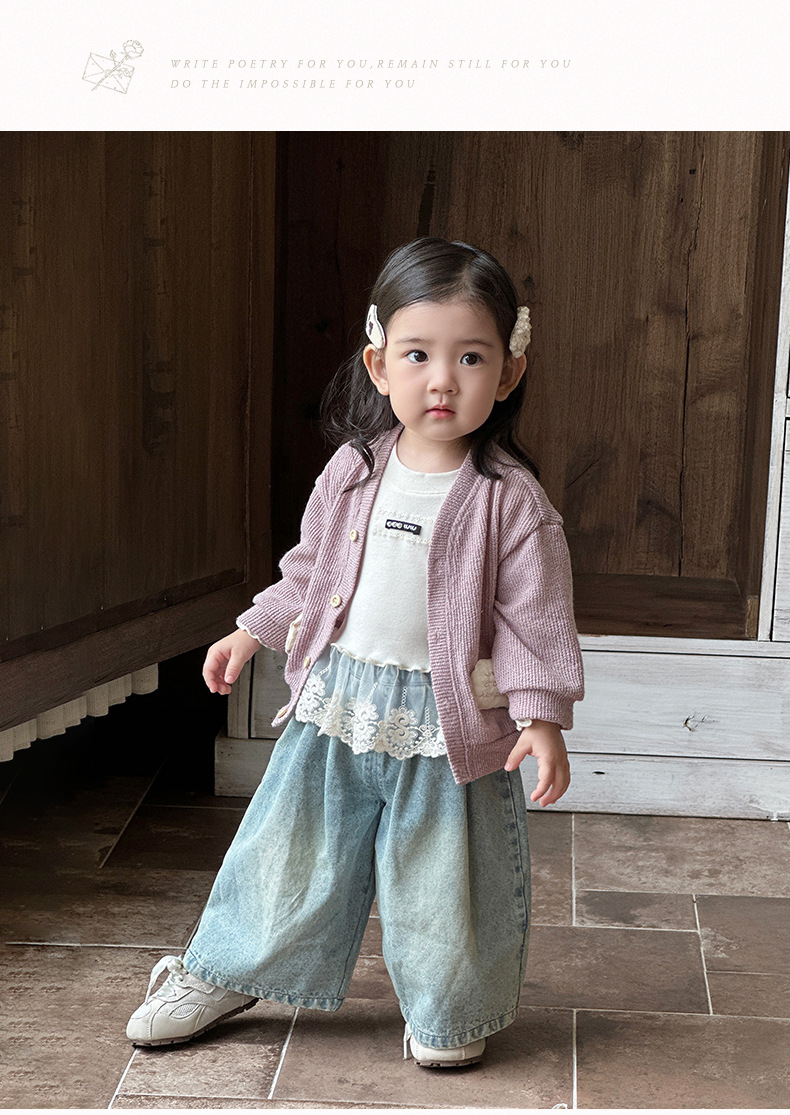 여아 스웨터 가디건, 영유아 라운드넥 하의 셔츠, 한국식 외국 스타일 와이드 팬츠 3종 세트, 아동 외출복 트렌디스토어 가기