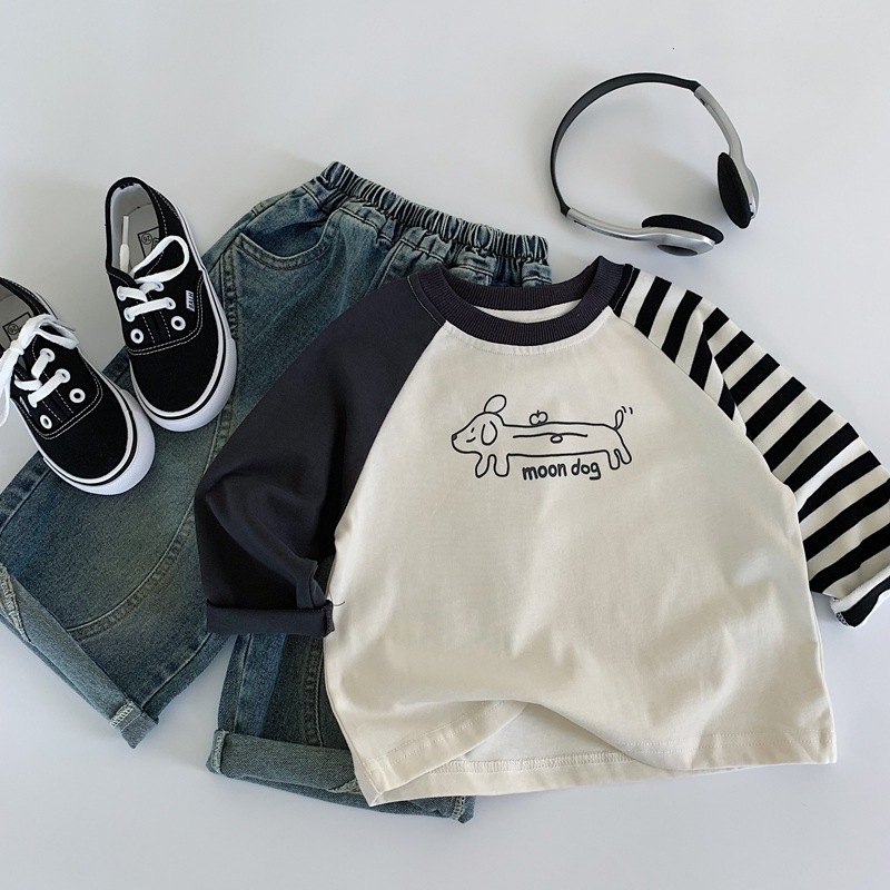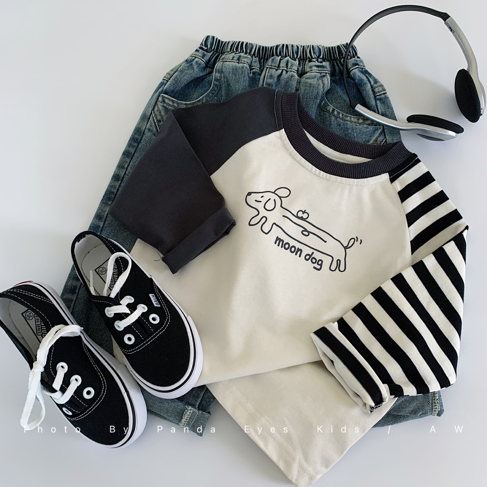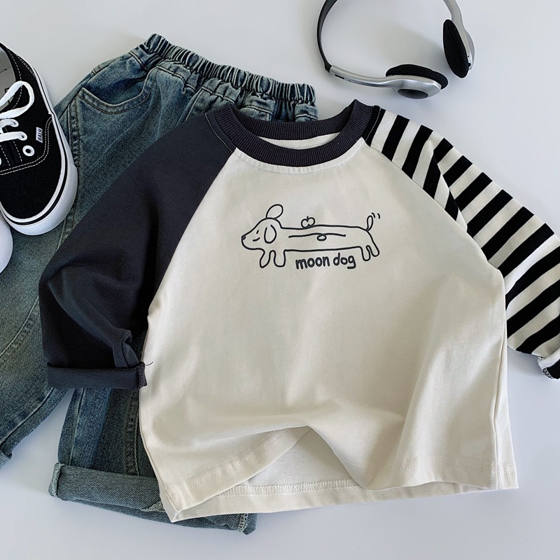 아동복 소년 가을 긴팔 티셔츠 봄, 가을 2025 새로운 색상 매칭 어린이 바닥 소년 가을 탑 t스토어 가기