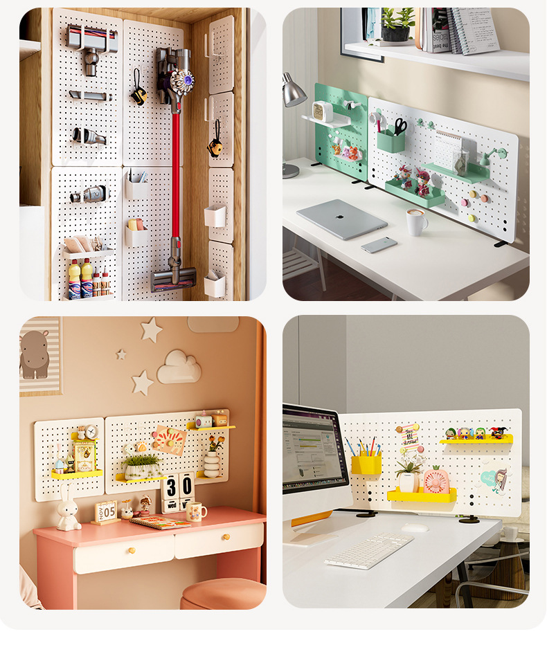 공장 직접 판매 데스크탑 수직 구멍 보드 DIY 액세서리 벽걸이 형 보관 랙 펀치없는 사무실 데스크 보관 랙