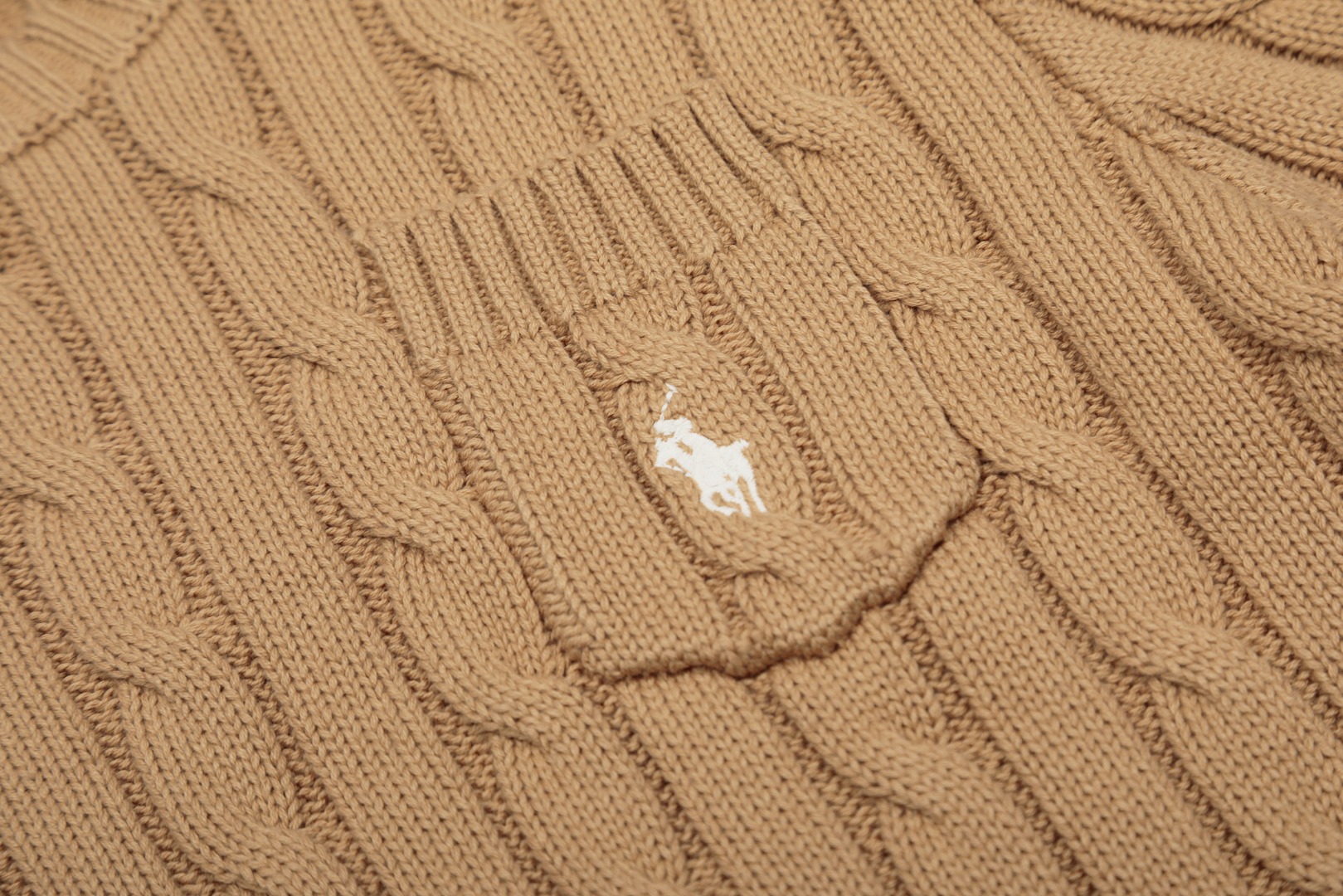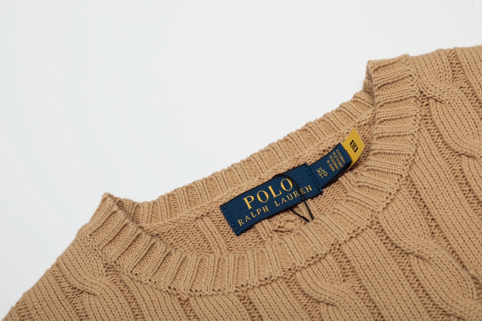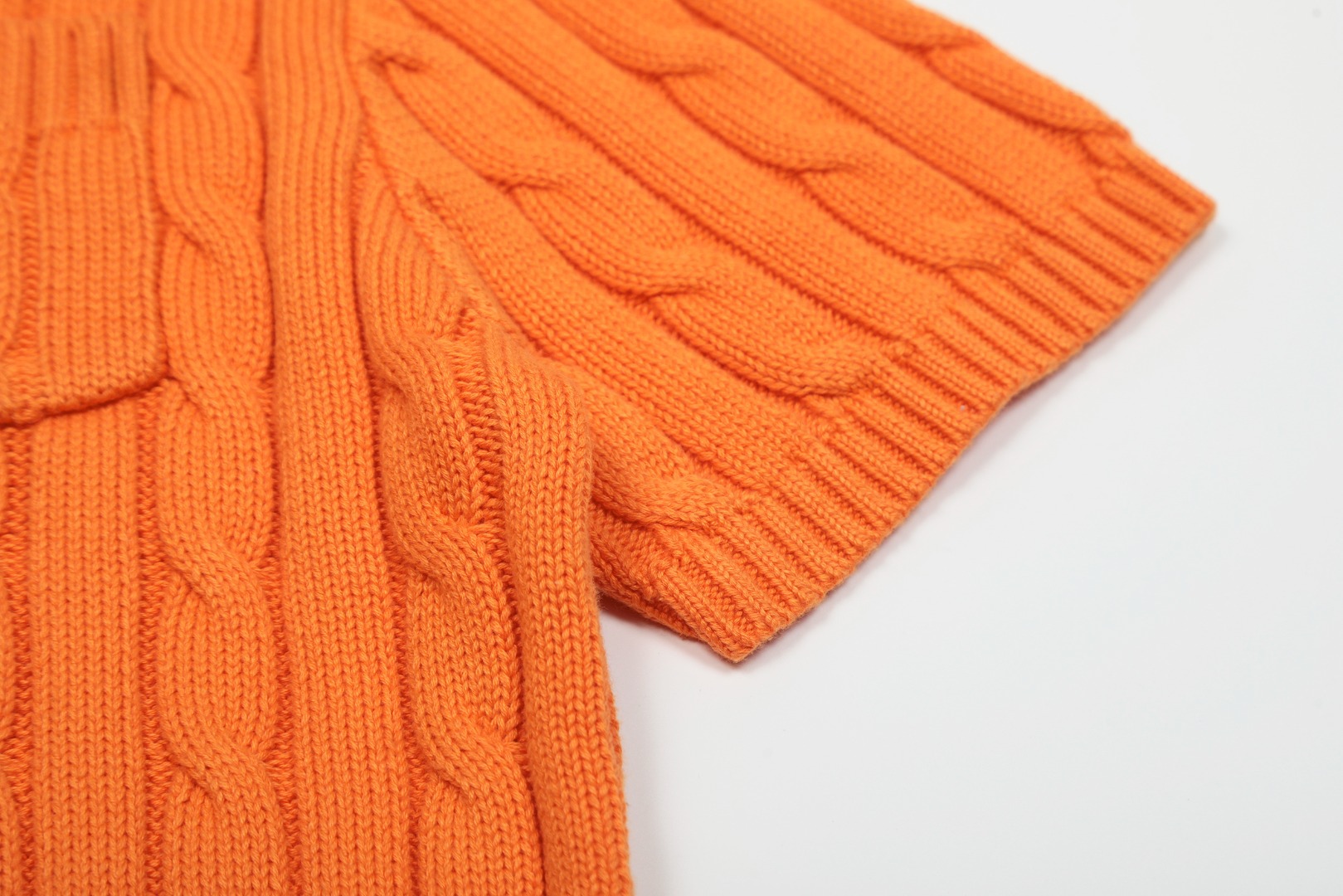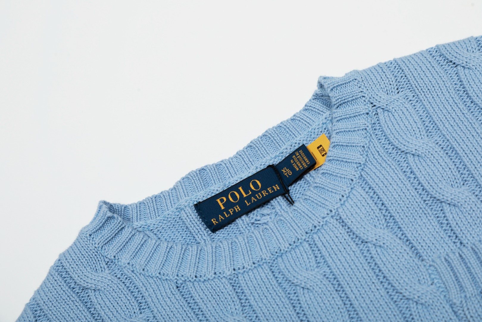 2025sRL 러프 니트 트위스트 포켓 반팔 티셔츠 포니 로고 자수 여성 탑 라운드 넥 케이블 바닥 셔츠스토어 가기