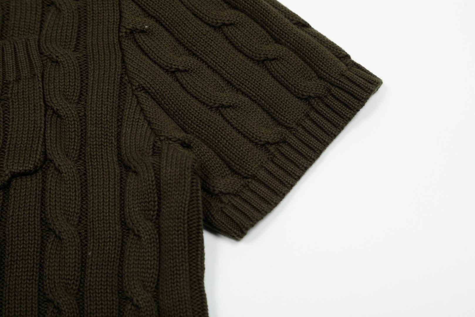 2025sRL 러프 니트 트위스트 포켓 반팔 티셔츠 포니 로고 자수 여성 탑 라운드 넥 케이블 바닥 셔츠