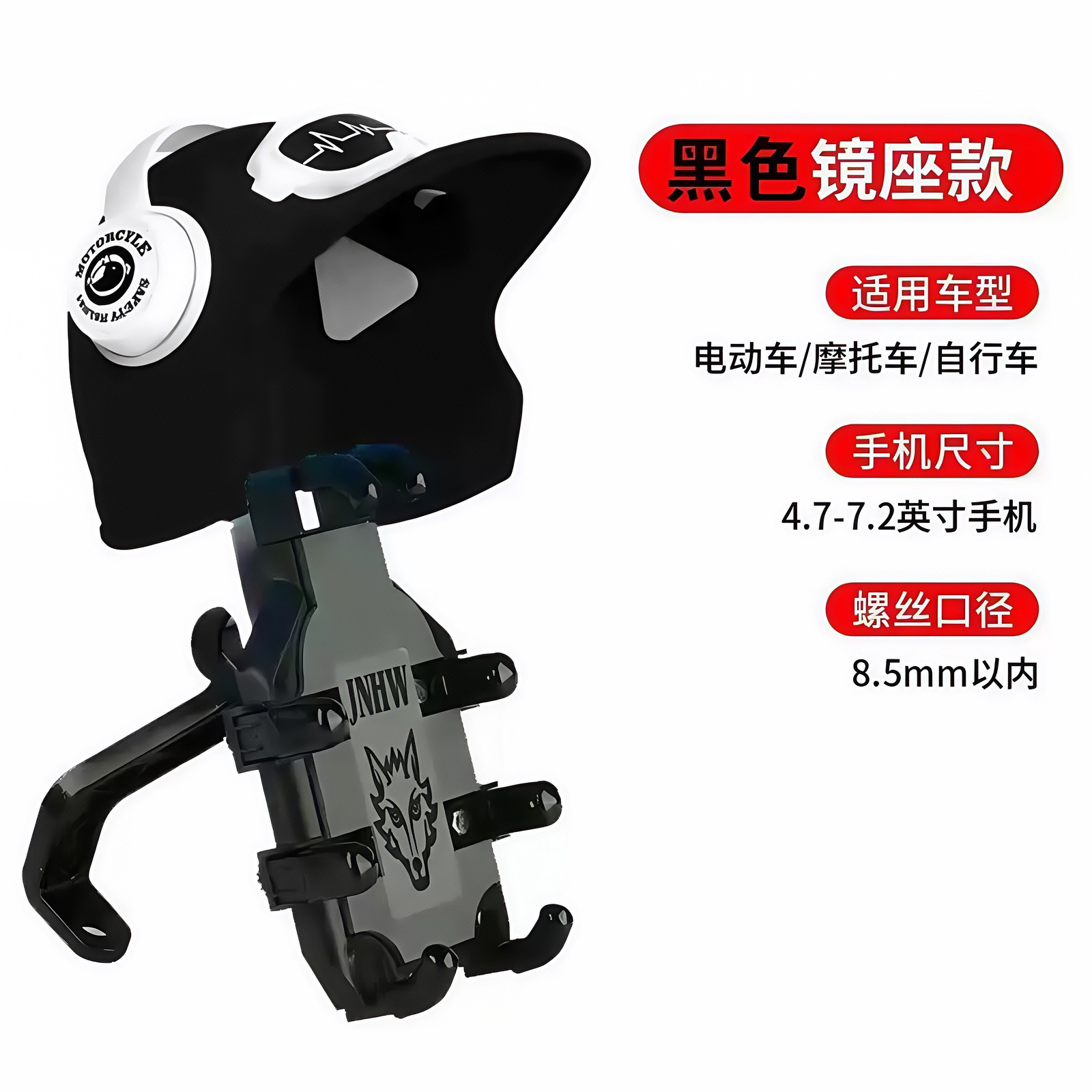 • 헬멧 8개 발톱 휴대폰 홀더 [백미러 스타일] 블랙
