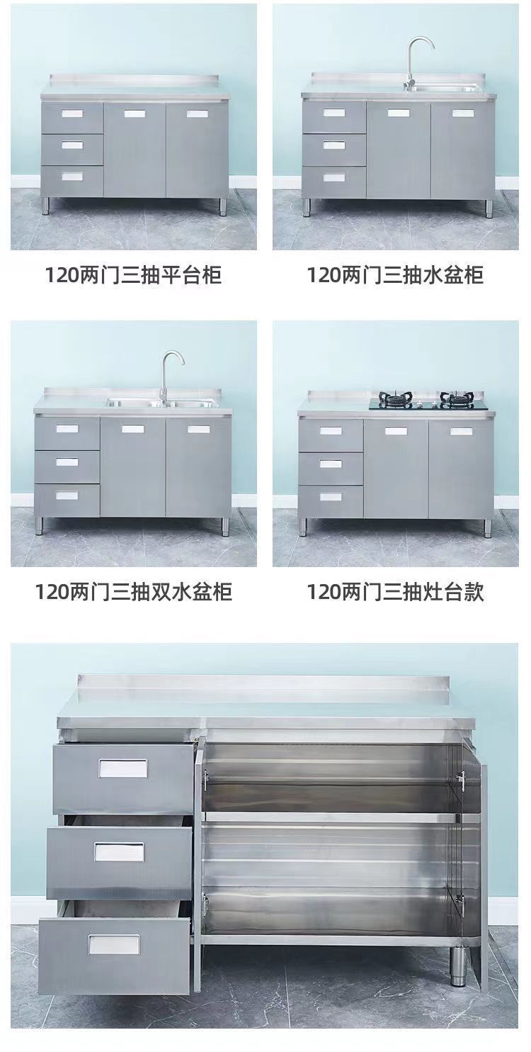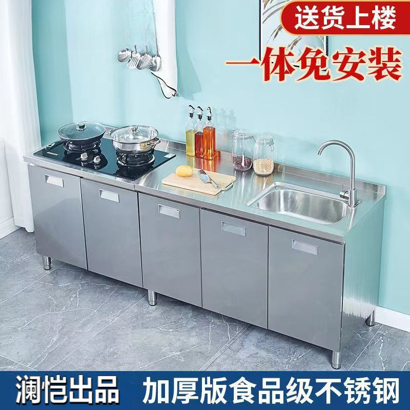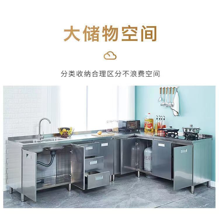 304 스테인레스 스틸 캐비닛 주방 찬장 스토브 캐비닛 식기 세척대 전체 캐비닛 두꺼운 간단한 통합 주방 캐비닛
