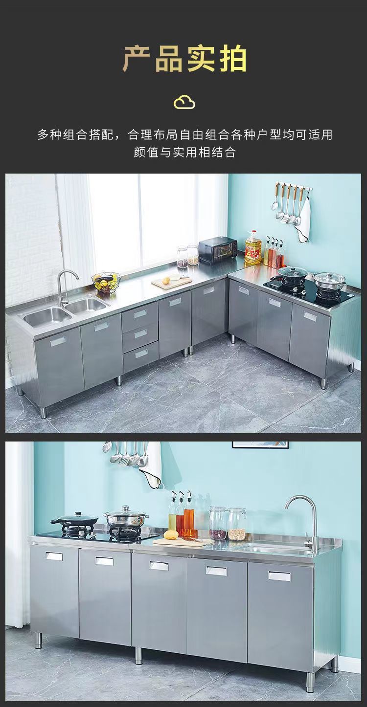 304 스테인레스 스틸 캐비닛 주방 찬장 스토브 캐비닛 식기 세척대 전체 캐비닛 두꺼운 간단한 통합 주방 캐비닛스토어 가기
