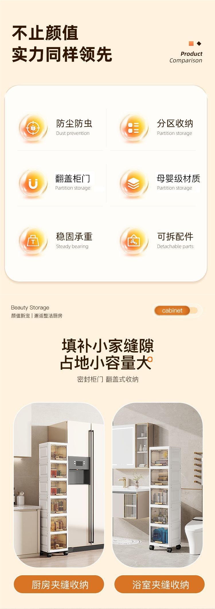 플립탑 틈새 수납장, 주방 틈새 수납선반, 욕실 좁은 틈새 수납장, 플라스틱 거실 스낵 캐비닛