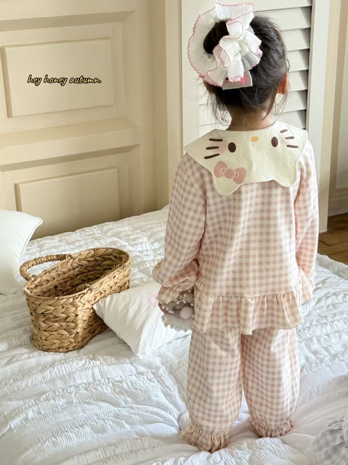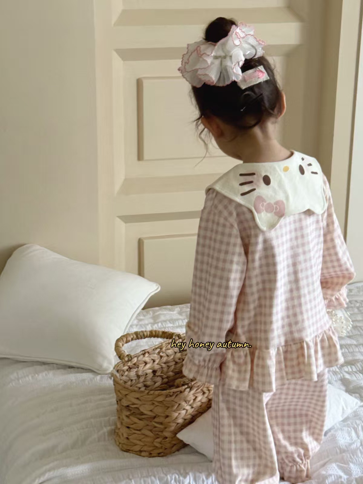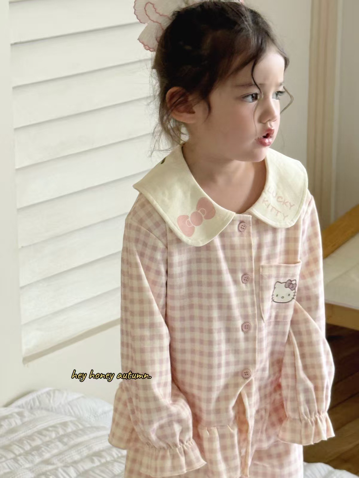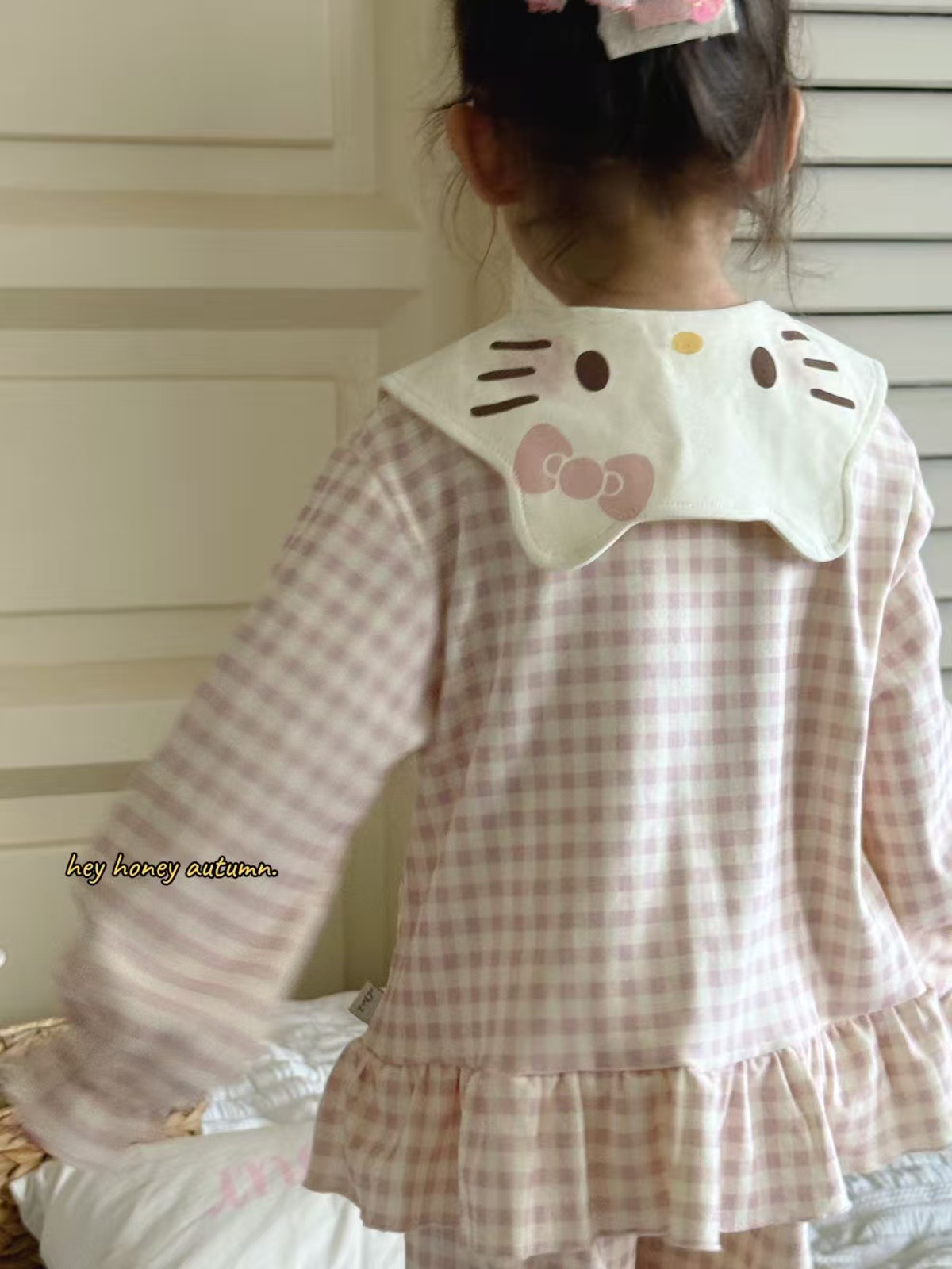 크고 작은 아동복 헤이 허니 여아용 아동 잠옷 가을 스타일 순면 헬로키티 만화 홈복 부모-자녀스토어 가기