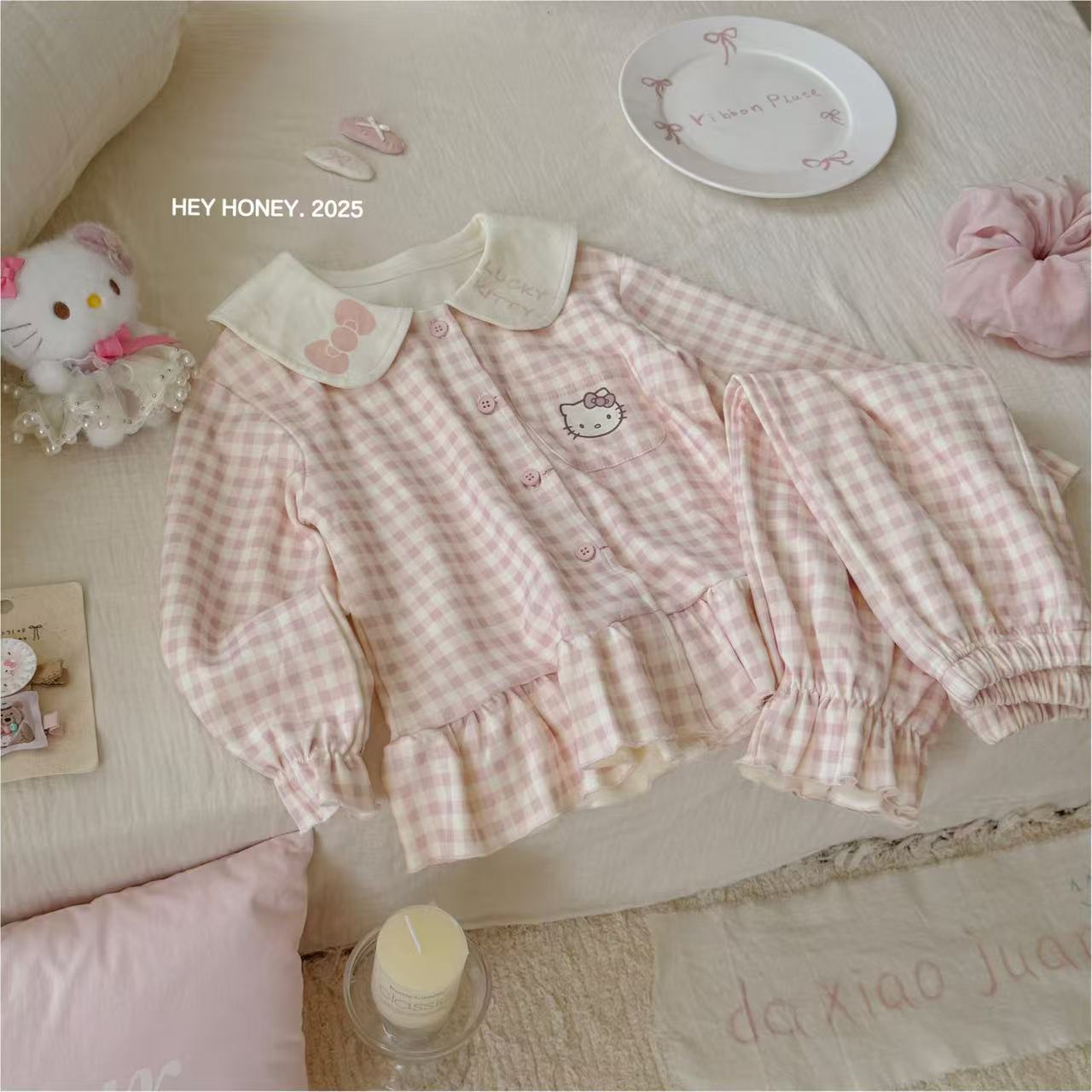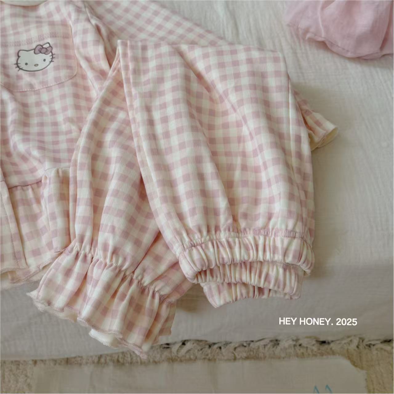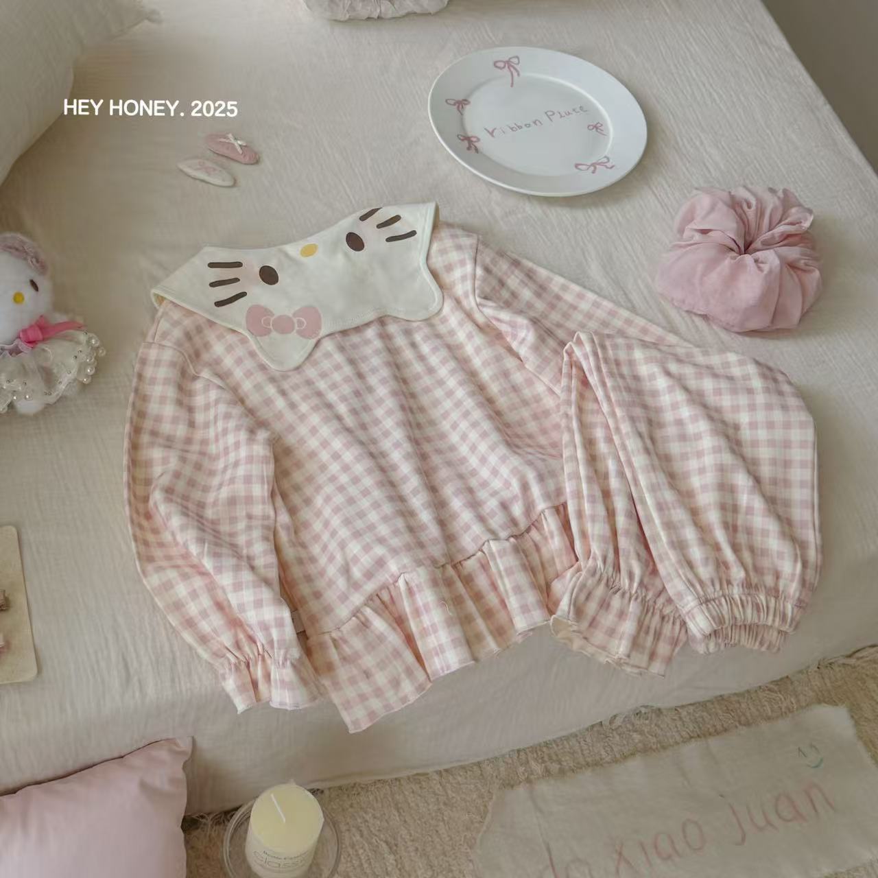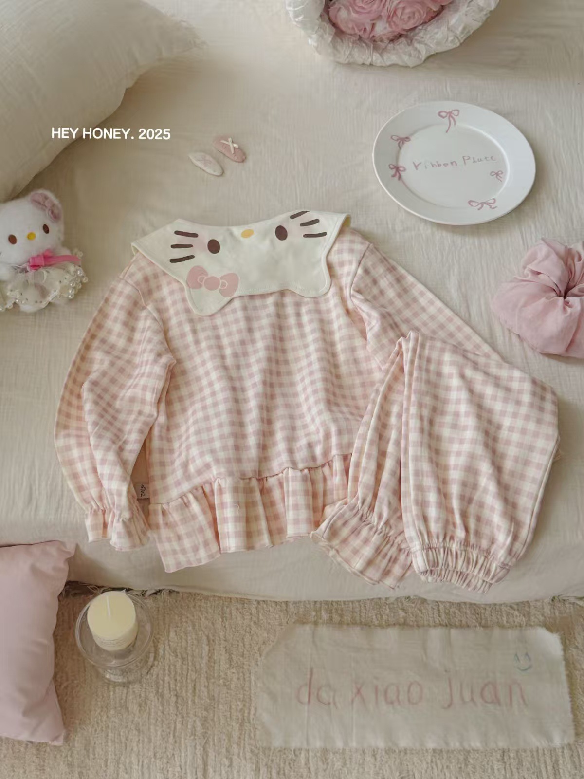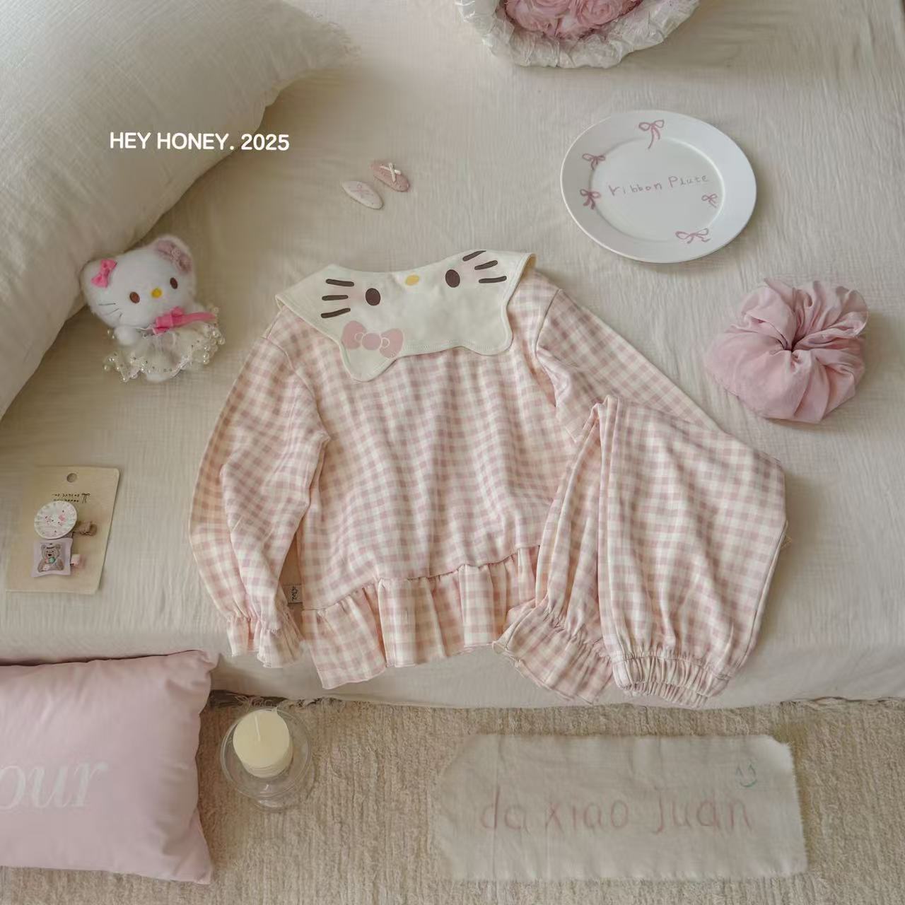 크고 작은 아동복 헤이 허니 여아용 아동 잠옷 가을 스타일 순면 헬로키티 만화 홈복 부모-자녀스토어 가기