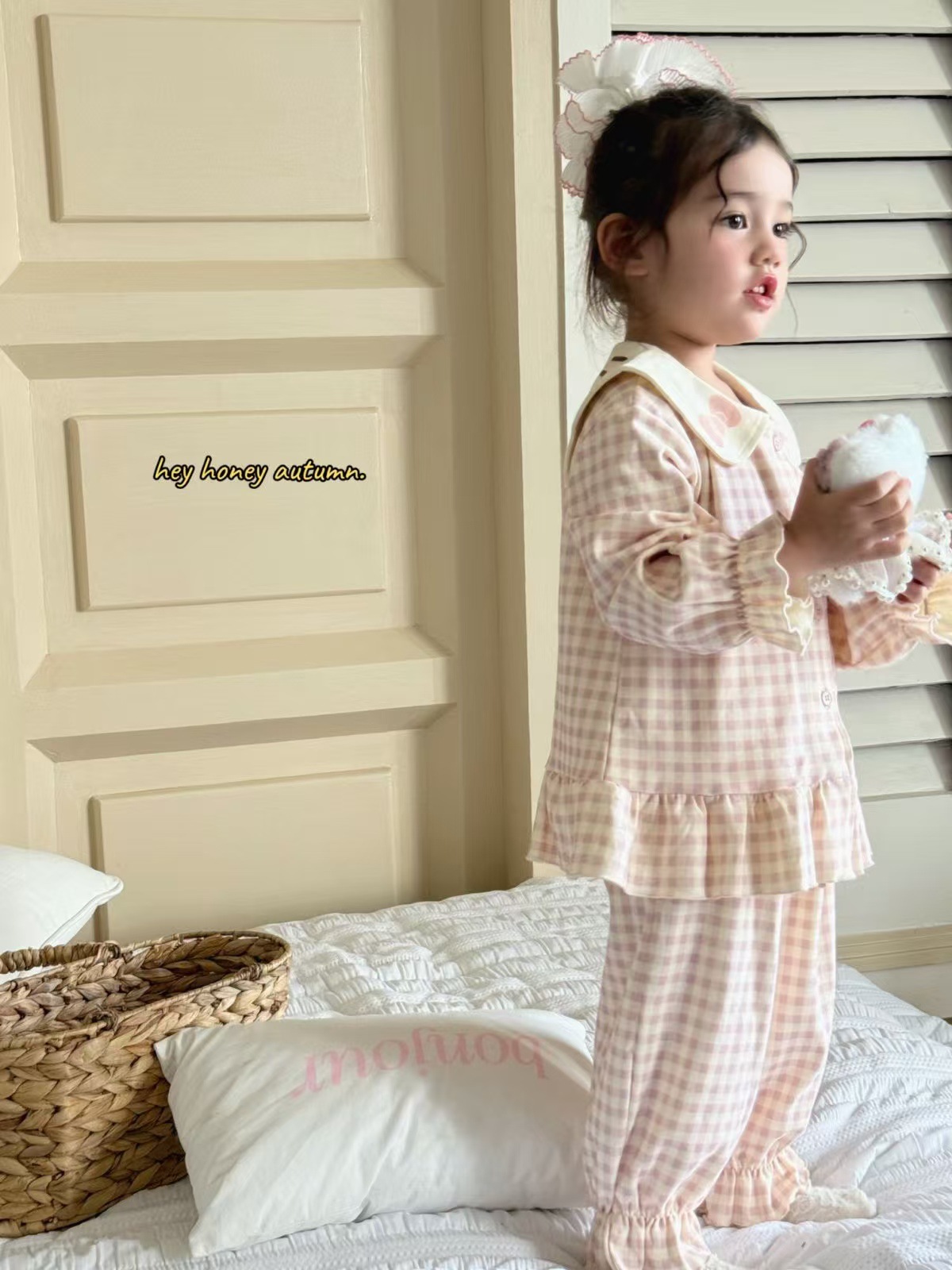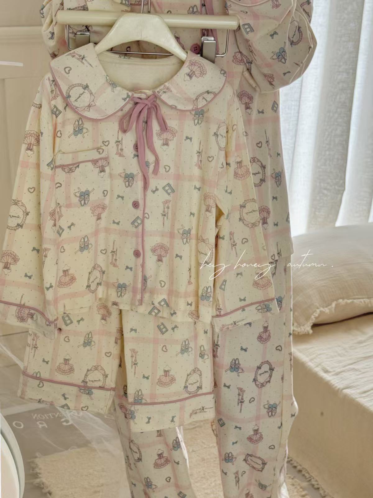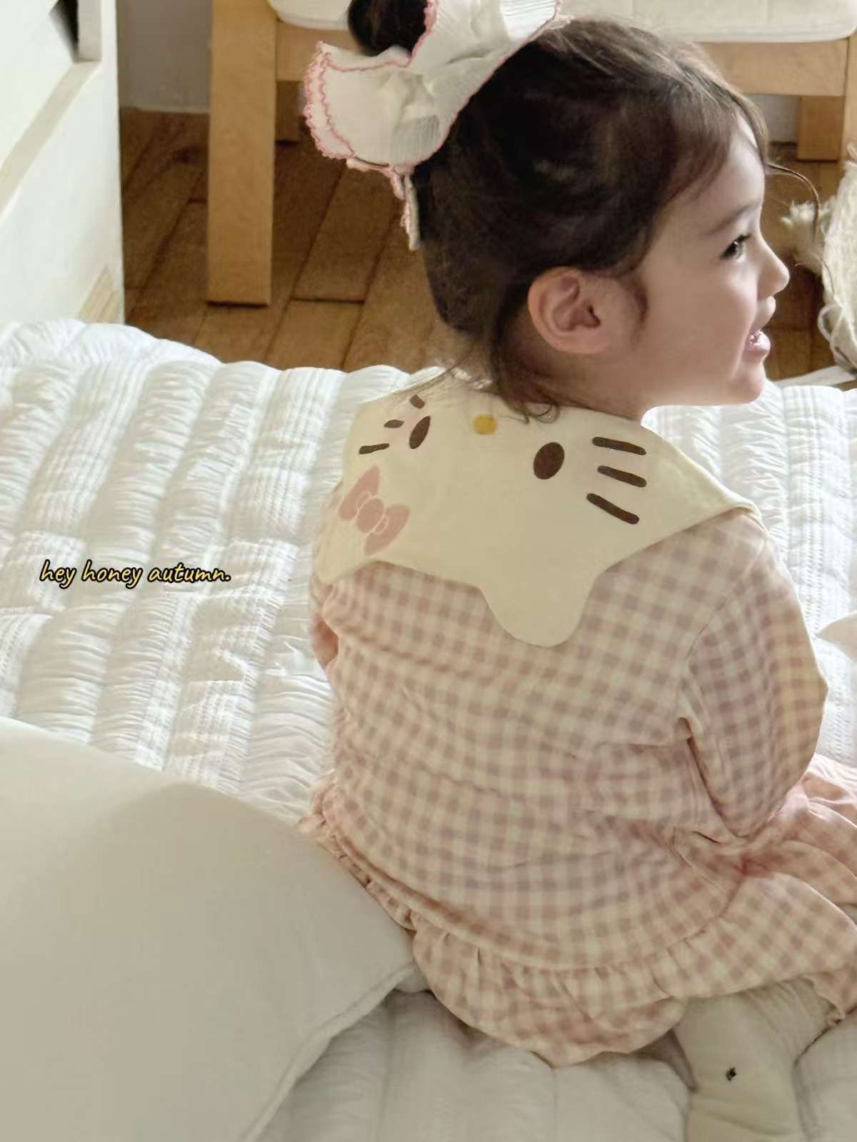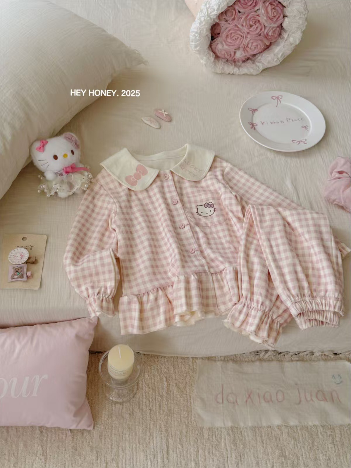 크고 작은 아동복 헤이 허니 여아용 아동 잠옷 가을 스타일 순면 헬로키티 만화 홈복 부모-자녀스토어 가기