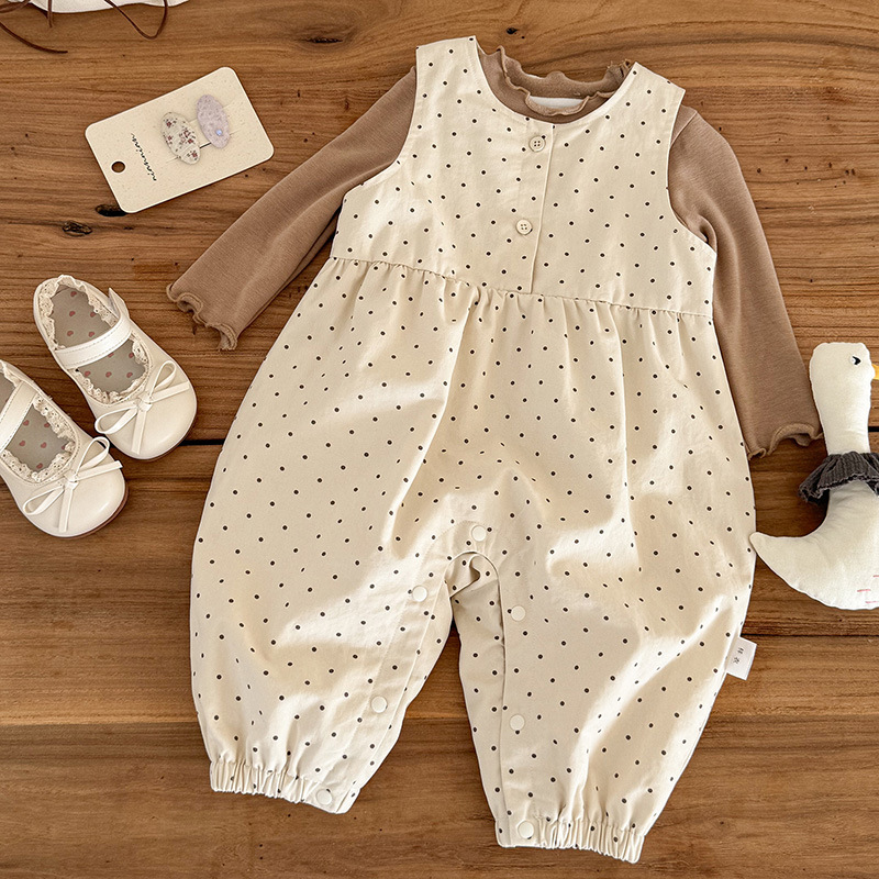여아 정장 신작 가을 의류 유아 도트 점프 슈트 베이비 바닥 긴팔 작업복 투피스 세트 카테고리 a