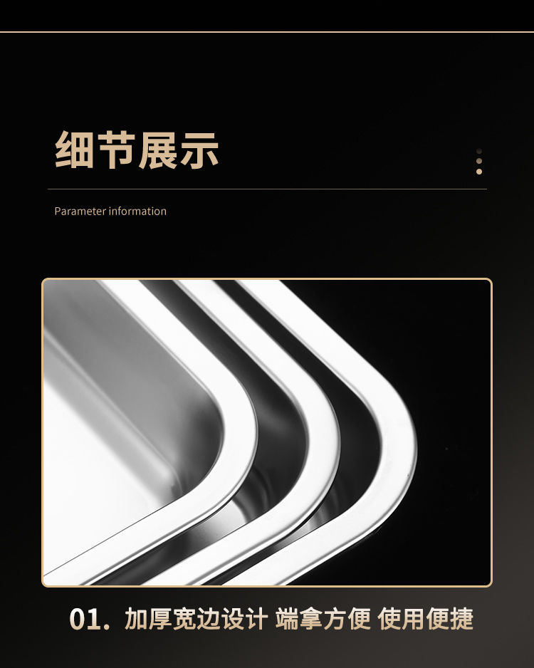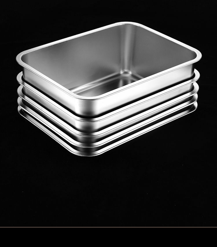 스테인레스 스틸 트레이 직사각형 두꺼운 평평한 바닥 사각형 트레이 바베큐 트레이 상업용 조리 트레이 저녁 식사 트레이 냉동 만두 트레이