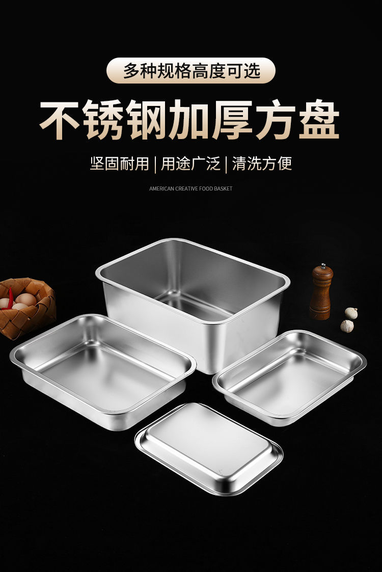 스테인레스 스틸 트레이 직사각형 두꺼운 평평한 바닥 사각형 트레이 바베큐 트레이 상업용 조리 트레이 저녁 식사 트레이 냉동 만두 트레이스토어 가기