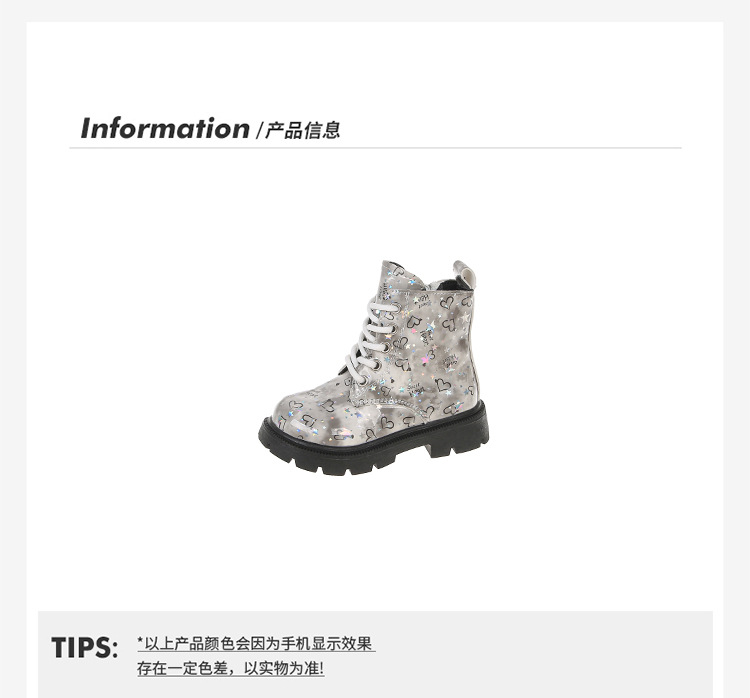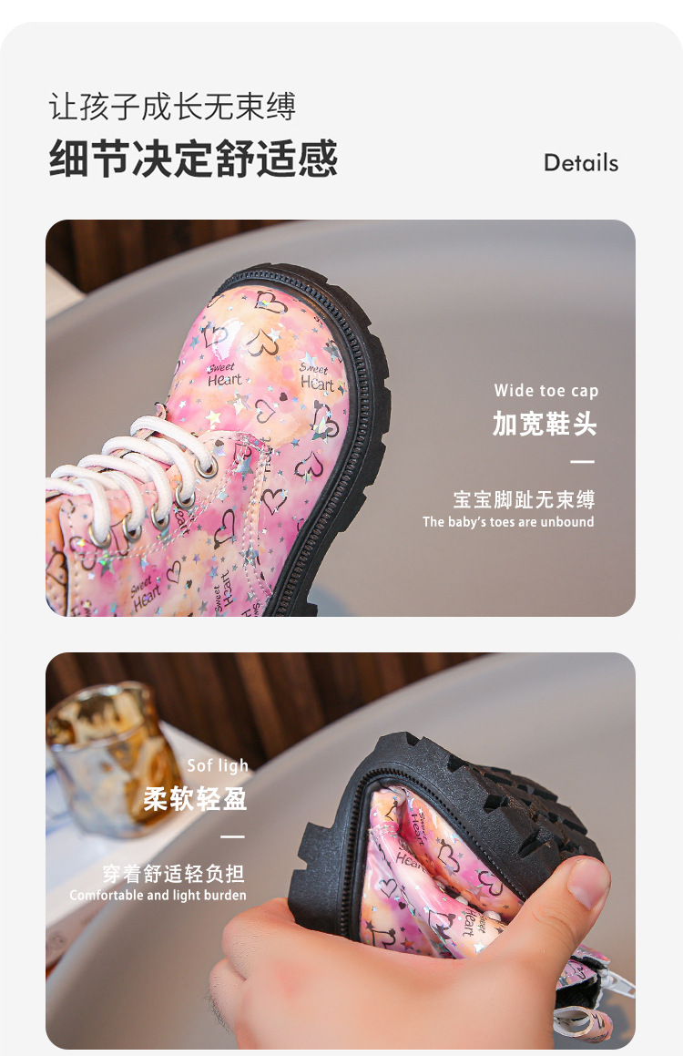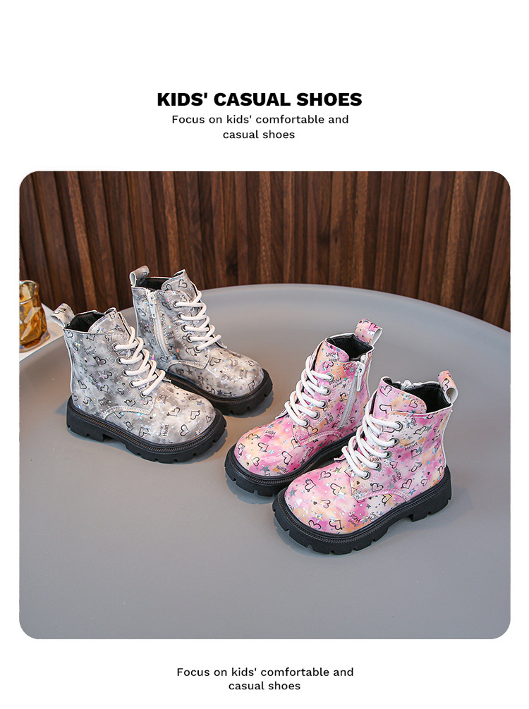 2025 새로운 가을, 겨울 밝은 가죽 인쇄 어린이 마틴 부츠 소녀 둥근 발가락 중간 튜브 가죽 부츠 소년 부츠 유행 크로스 보더