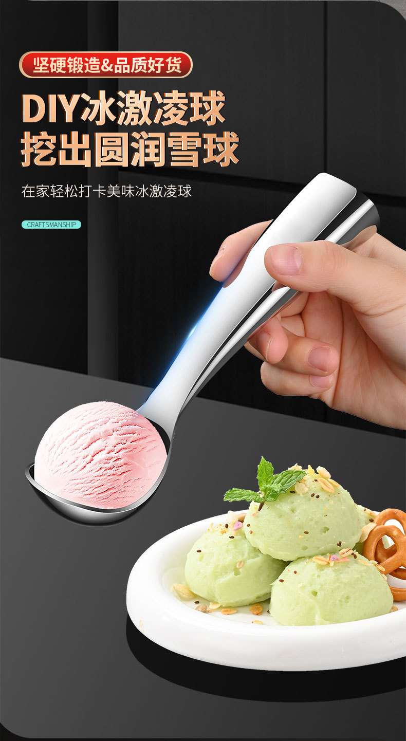 두꺼운 304 스테인레스 스틸 아이스크림 스푼, 깊은 스푼 헤드, 볼 스쿠프, 스탠딩 아이스크림 스푼, 다용도 디저트 스푼