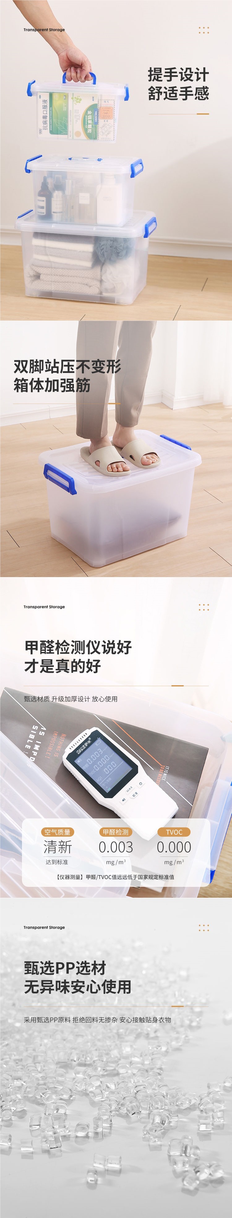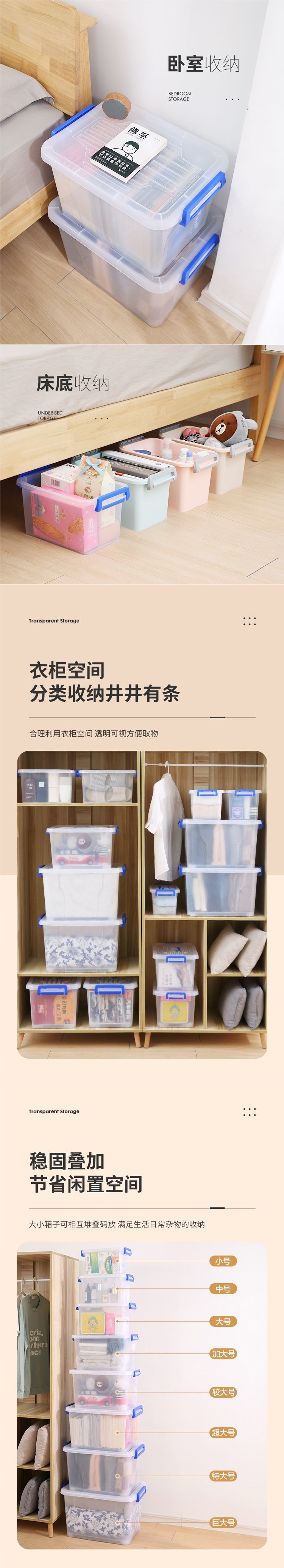 옷, 크고 작은 음식 및 장난감 보관 상자, 다기능 잡화 보관 상자를 위한 투명 플라스틱 보관 상자스토어 가기