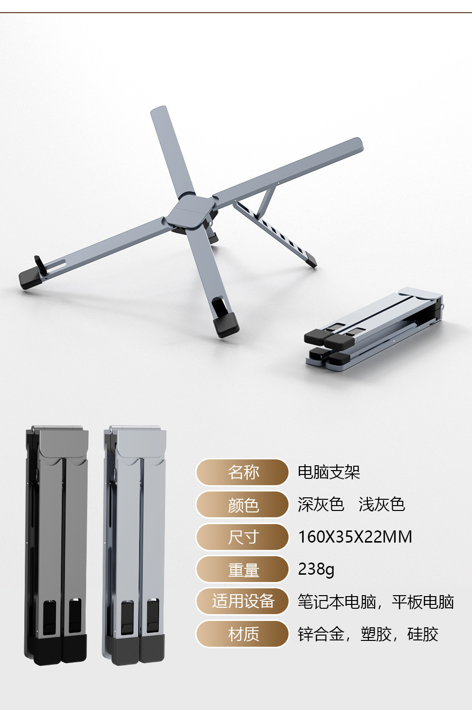 • [E09 X자형 컴퓨터 스탠드 그레이] 접이식 - 휴대성이 뛰어나고 높이 조절 가능