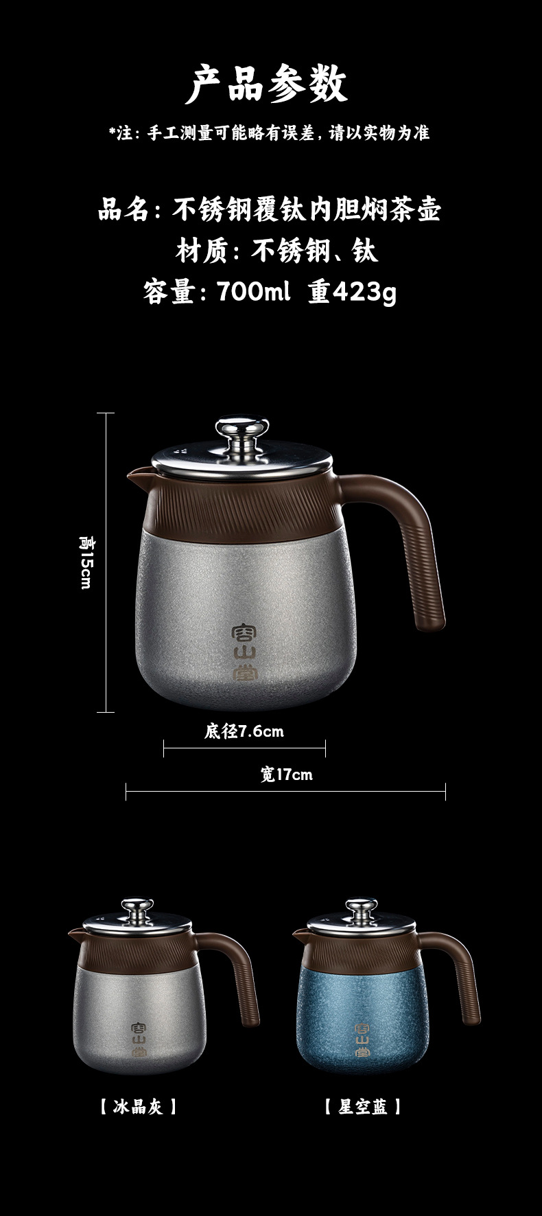 容山堂不锈钢覆钛焖茶壶保温壶闷茶壶热水壶焖壶保温瓶保温杯