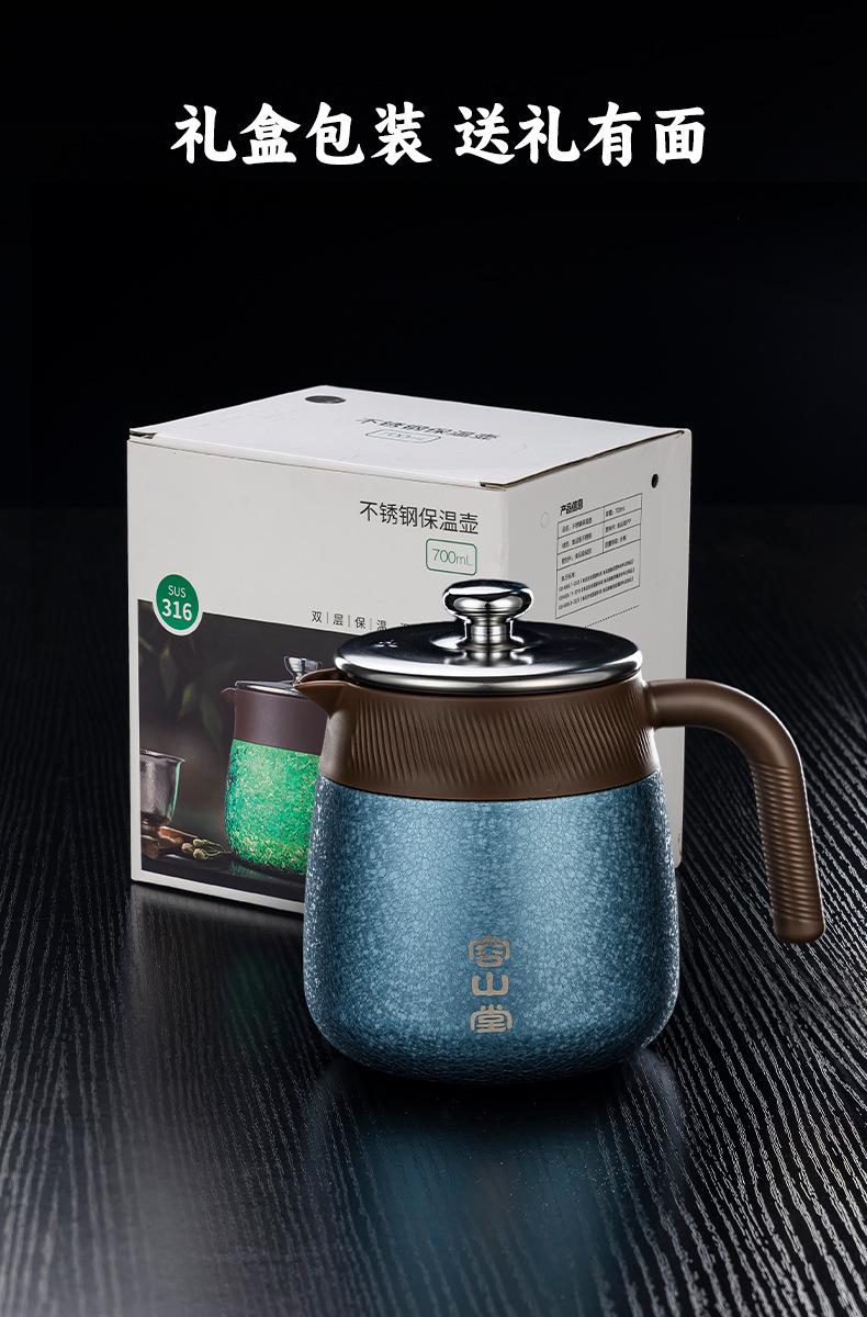 容山堂不锈钢机械温显焖茶壶闷茶壶316保温壶家用陶瓷内胆泡茶壶