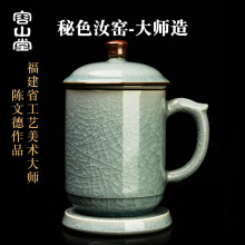 容山堂陈文德大师汝窑陶瓷茶水分离泡茶杯办公杯老板杯中秋节礼物