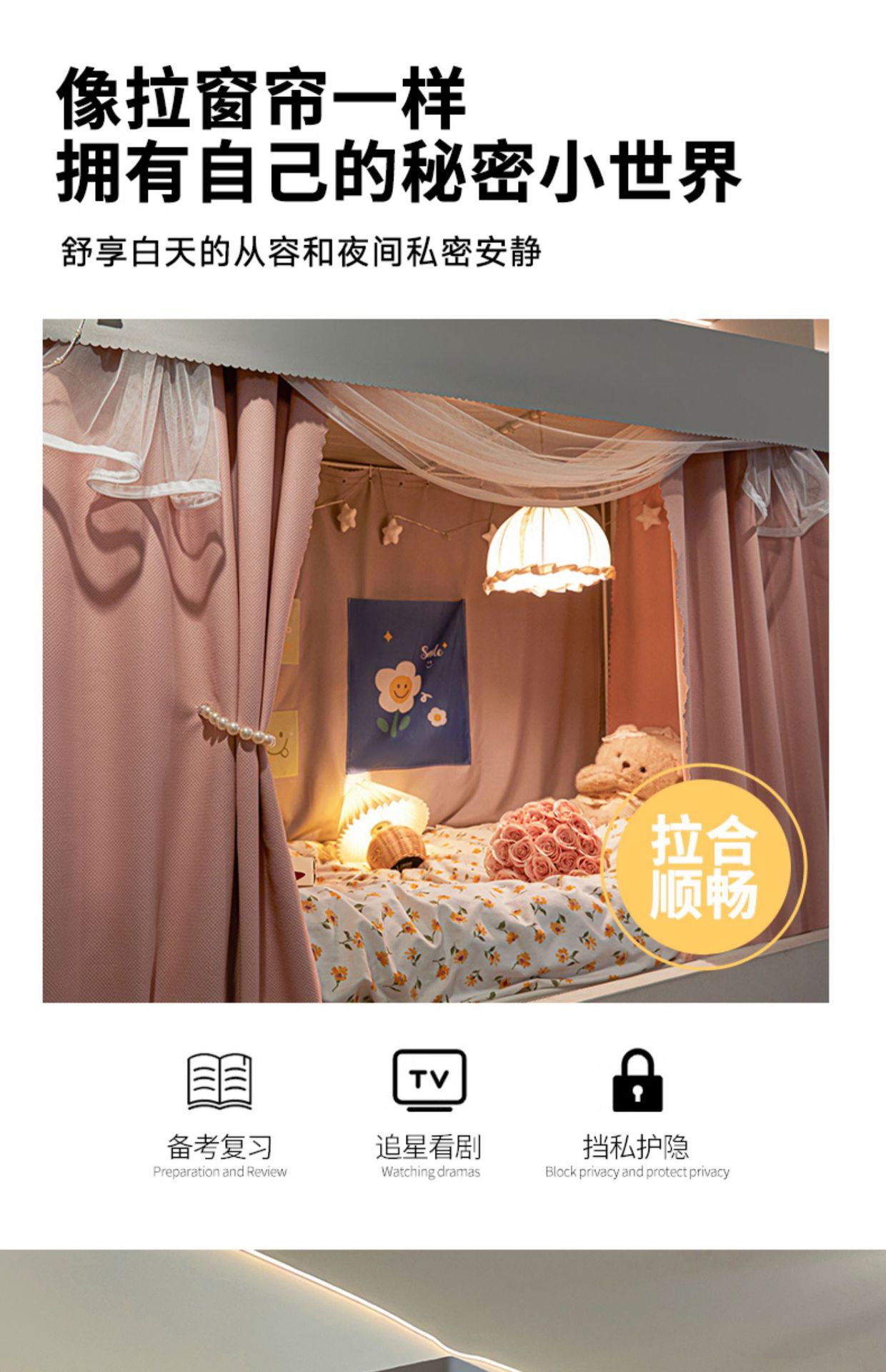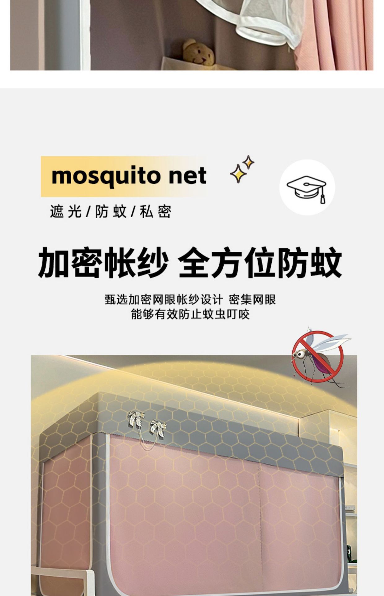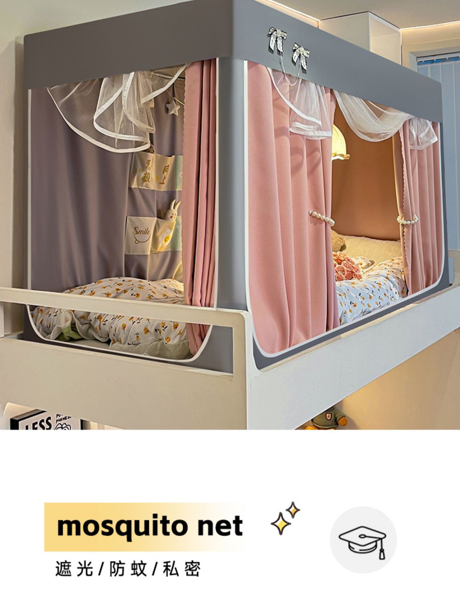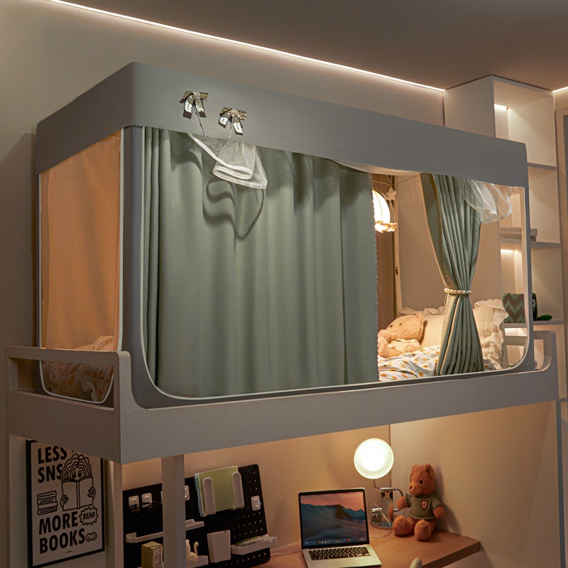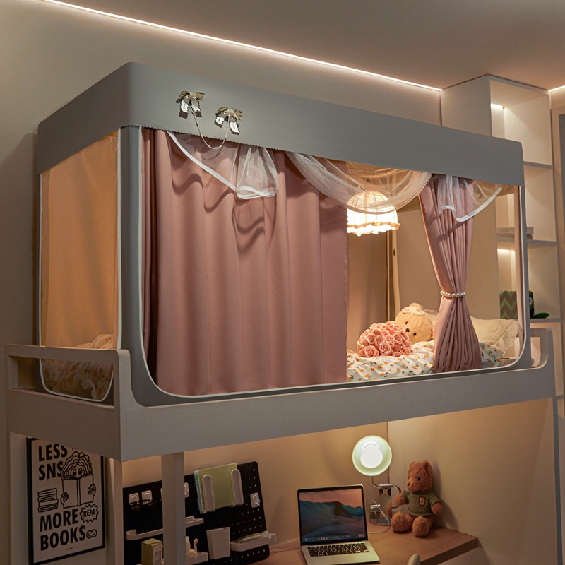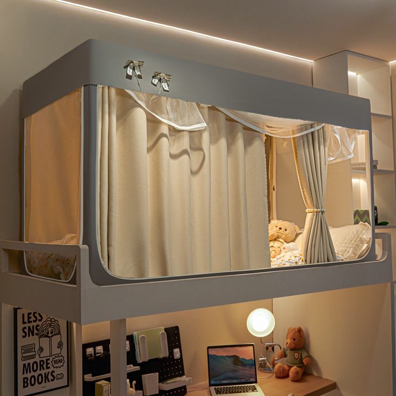 2025 새로운 스타일의 강화 전체 바닥 면 및 린넨 신선하고 단순한 단색 더블 학생 기숙사 개인 정보 보호 차광 모기장 침대 커튼스토어 가기