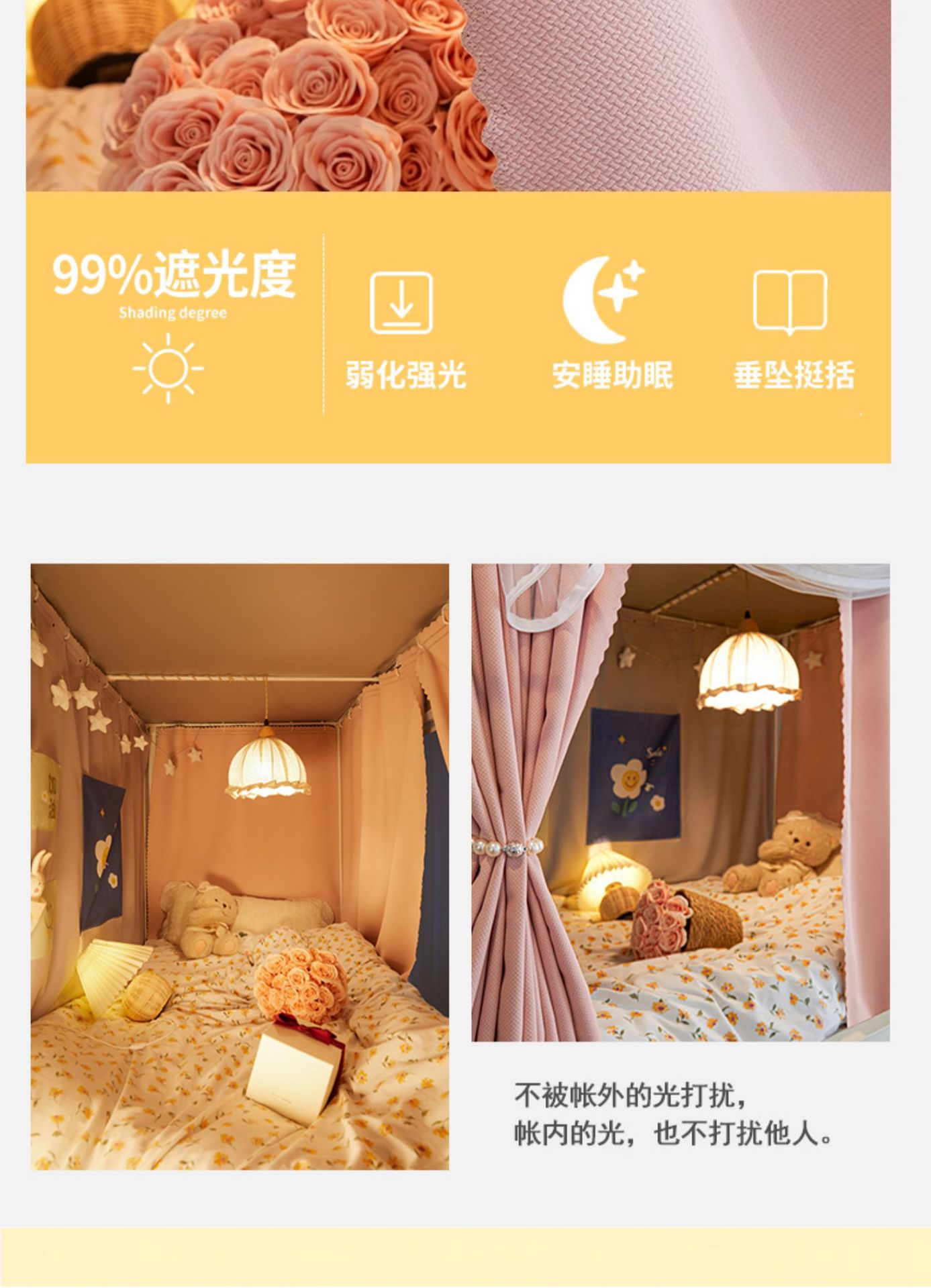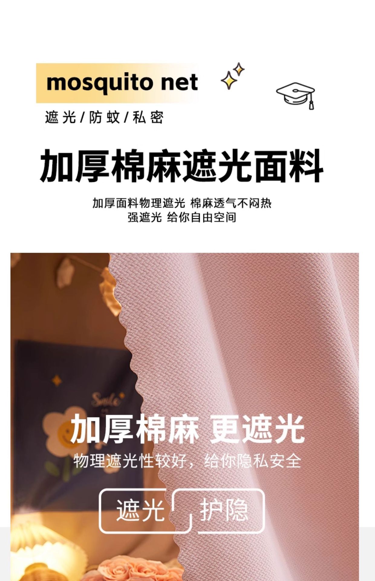 2025 새로운 스타일의 강화 전체 바닥 면 및 린넨 신선하고 단순한 단색 더블 학생 기숙사 개인 정보 보호 차광 모기장 침대 커튼