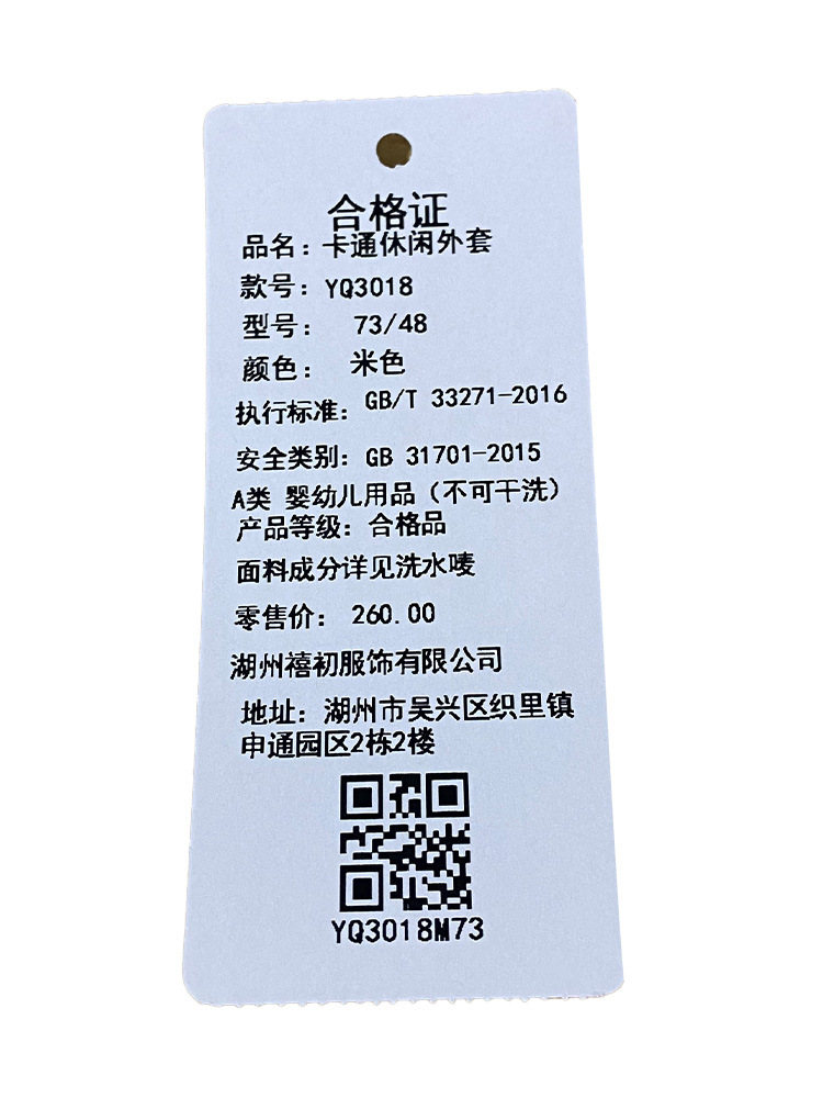 外套面料成分:100%棉里布:100%棉