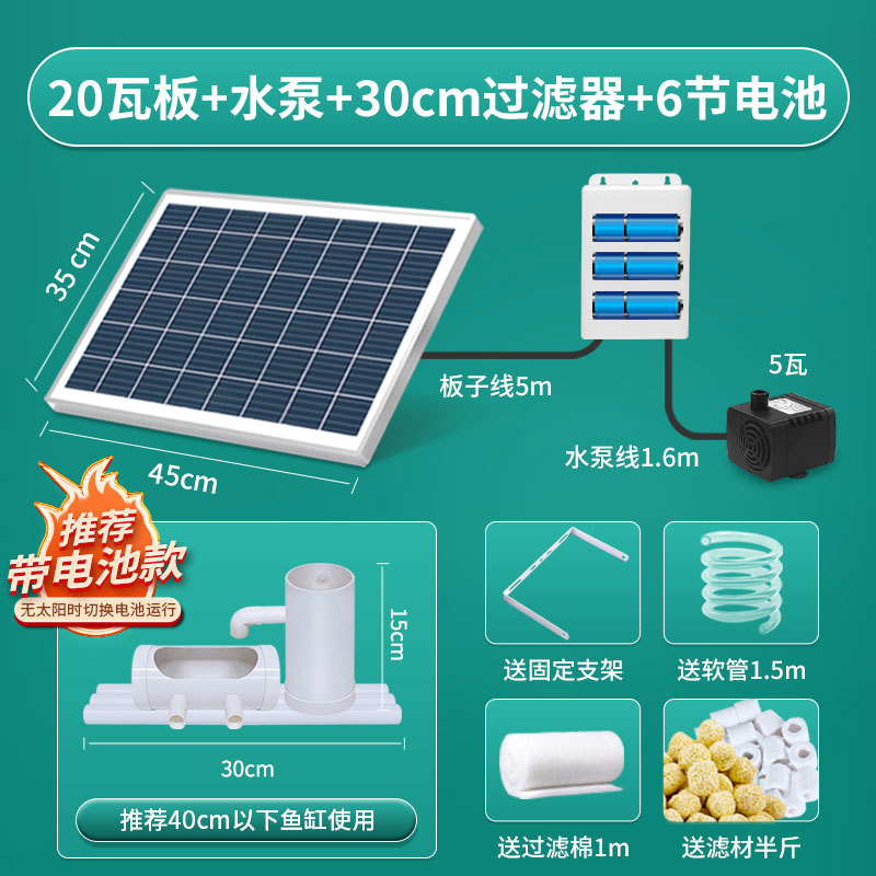 • 20와트 패널 + 워터 펌프 + 강화 대용량 배터리 + 30cm 필터 ★☆