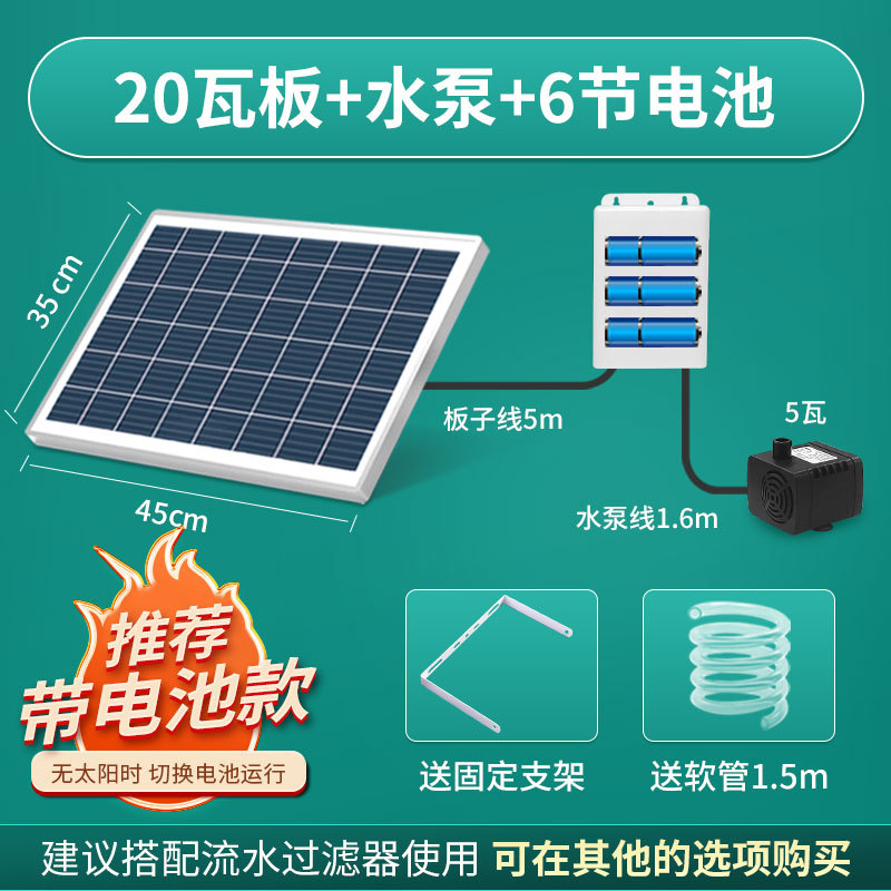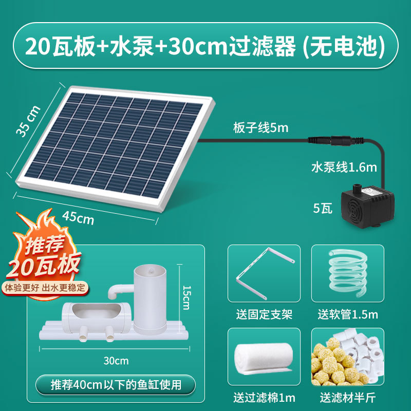 • 20와트 패널 + 워터 펌프 + 30cm 필터 (배터리 미포함) ★☆