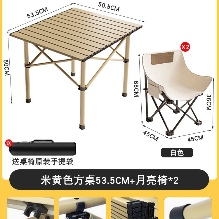 • 【두꺼운 X자형 탄소강】 베이지 사각 테이블 53cm + 달 의자 2개 + 휴대용 수납 가방 증정☆♢