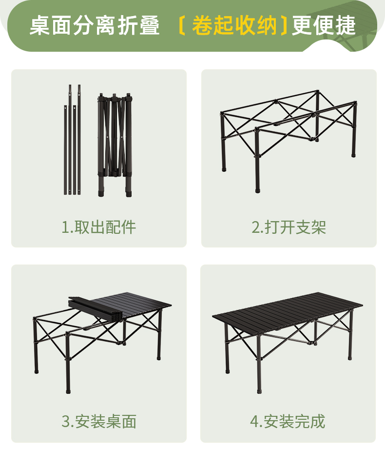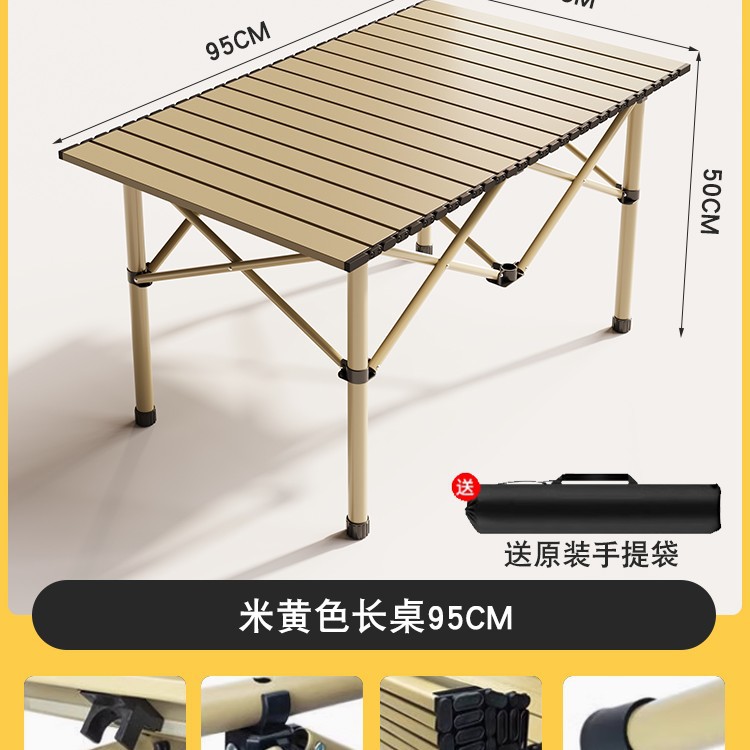 • [두꺼운 X자형 탄소강] 베이지색 긴 테이블 95cm에는 휴대용 수납가방이 함께 제공됩니다.☆♢