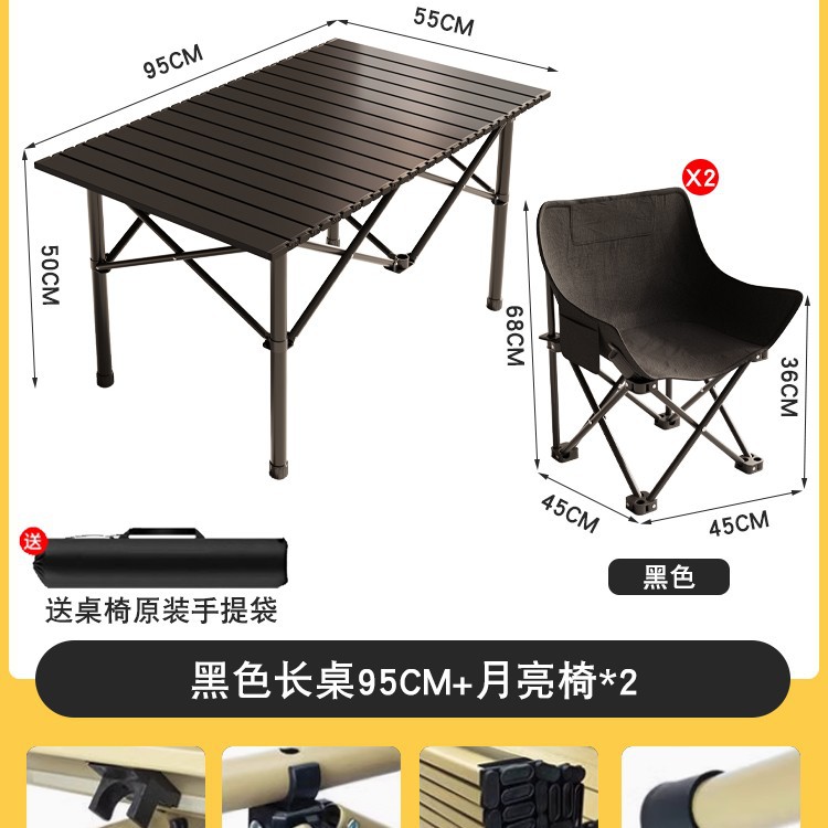• 【두꺼운 X자형 탄소강】 블랙 사각 테이블 95cm + 달 의자 2개 + 휴대용 수납 가방 증정☆♢