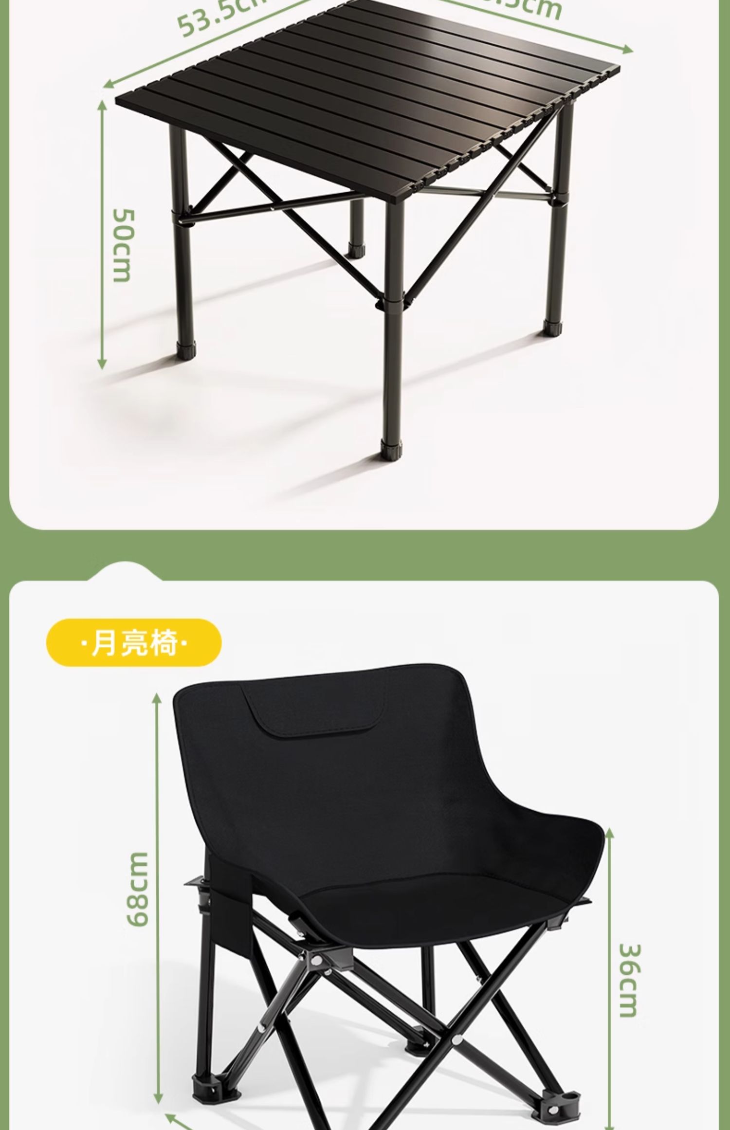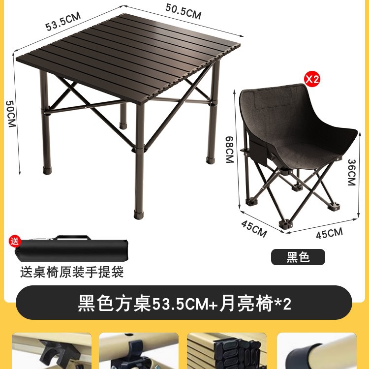 • 【두꺼운 X자형 탄소강】 블랙 사각 테이블 53cm + 달 의자 2개 (휴대용 수납 가방 증정)☆♢
